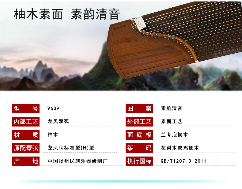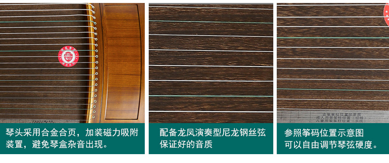 商品名称:龙凤品牌古筝厂家直销9609田泉系列柚木特选素面古筝