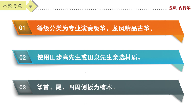 商品名称:龙凤古筝9807田泉系列楠木双弧专业正品成人素面古筝