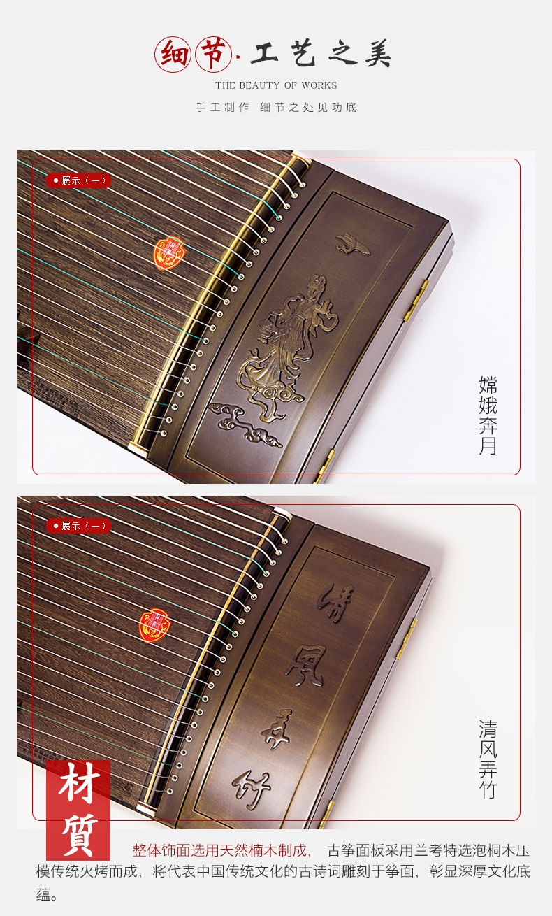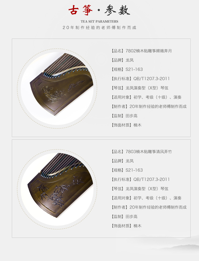 商品名称:龙凤品牌古筝厂家直销7802嫦娥奔月7803清风弄竹双弧古筝