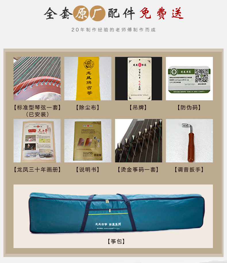 龙凤品牌古筝6827刻诗工艺人间仙韵双弧古筝
