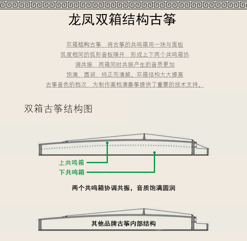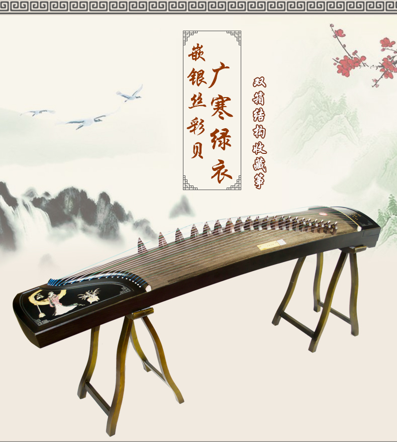 商品名称:龙凤田泉系列古筝9918嵌银丝广寒绿衣筝演奏收藏筝