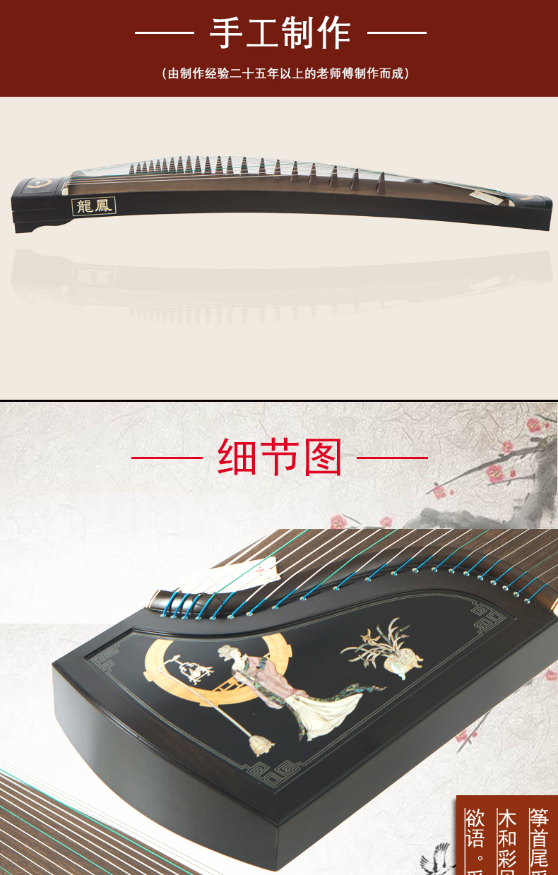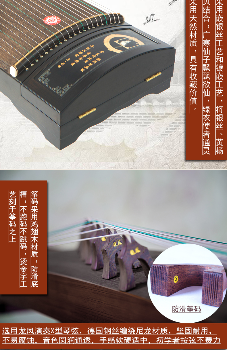 龙凤田泉系列古筝9918嵌银丝广寒绿衣筝演奏收藏筝
