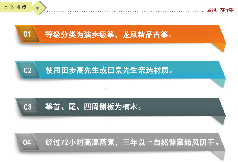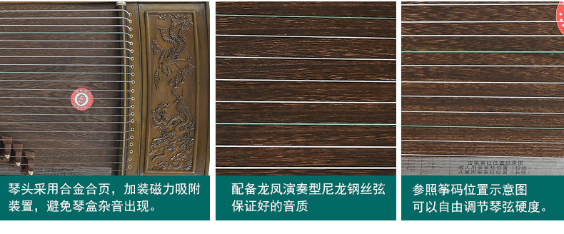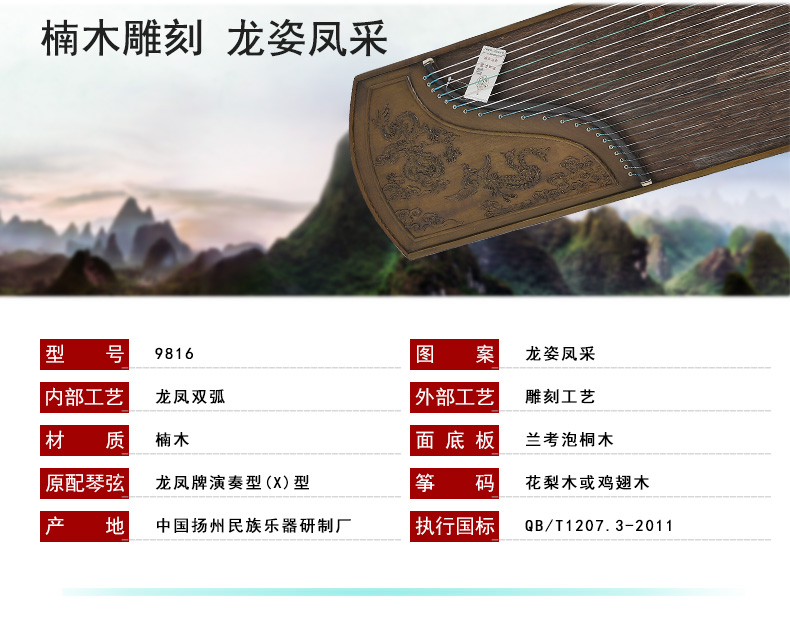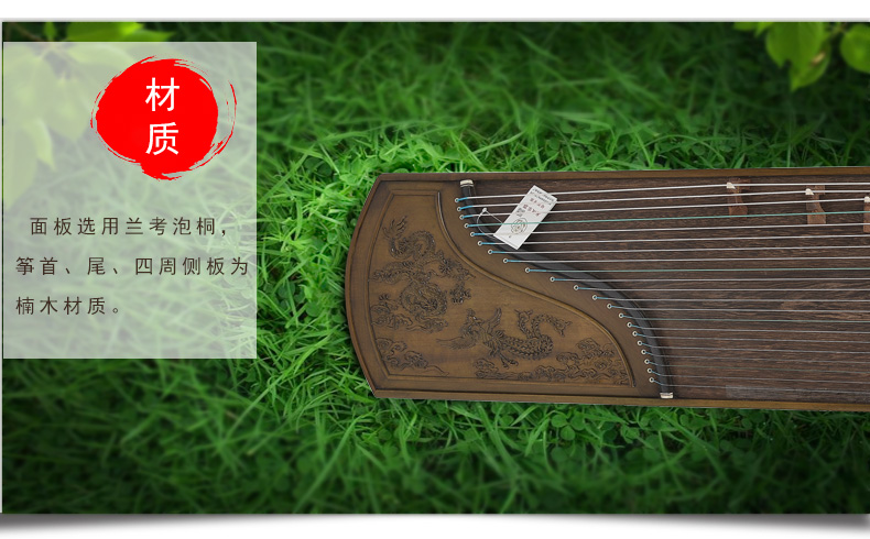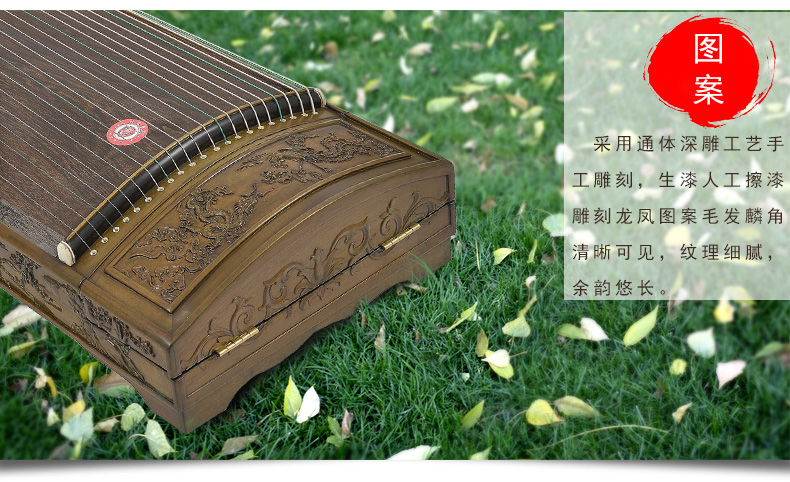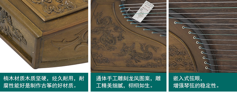 商品名称:龙凤品牌古筝厂家直销9816田泉系列楠木雕刻龙姿凤彩