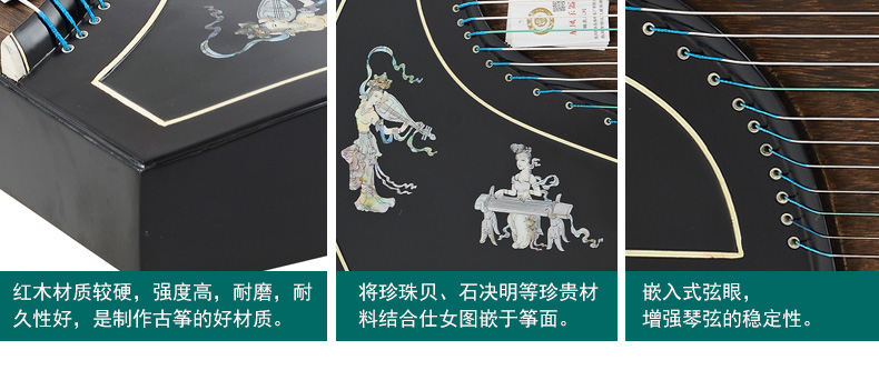 商品名称:龙凤古筝9803田泉系列红木螺钿人物专业考级实木古筝琴