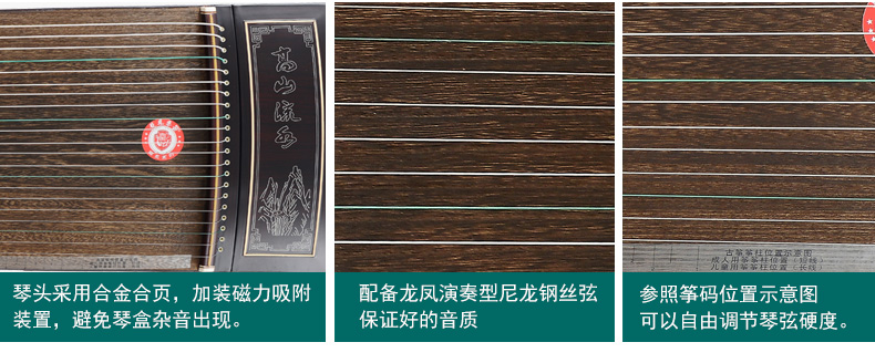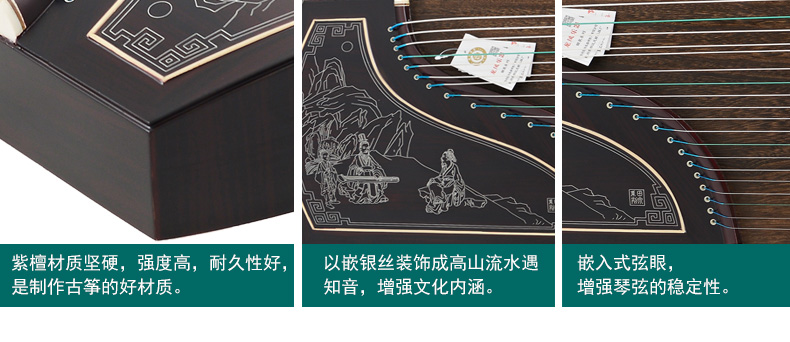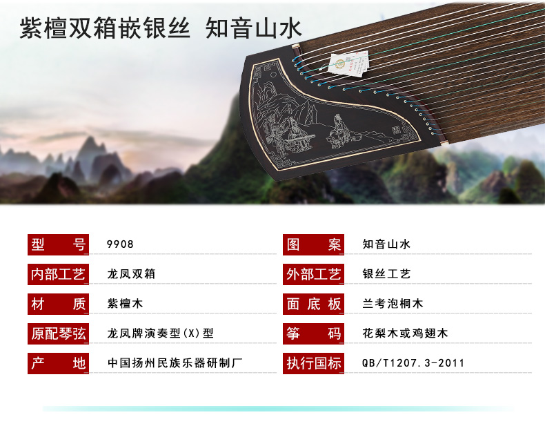 商品名称:龙凤品牌古筝厂家直销9908紫檀嵌银丝高山流水古筝