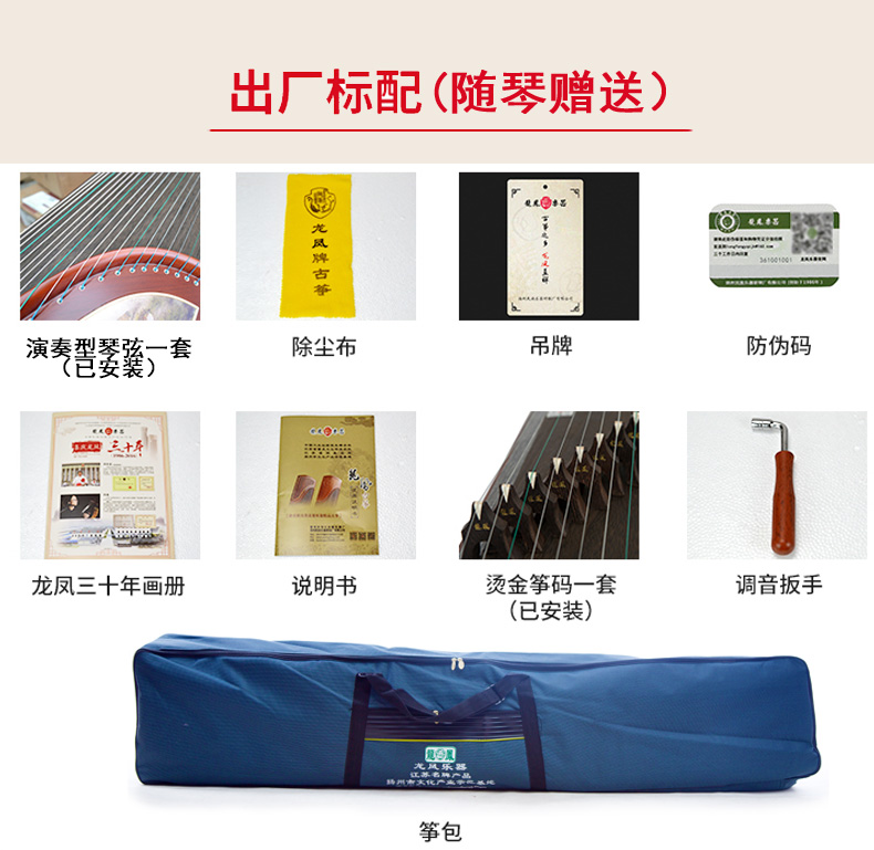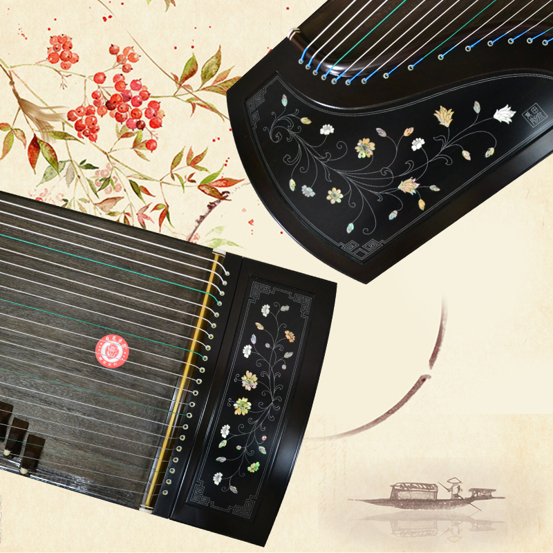 龙凤双弧古筝9820田泉系列黑檀嵌螺筝花之舞演奏考级筝