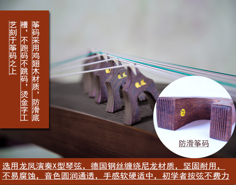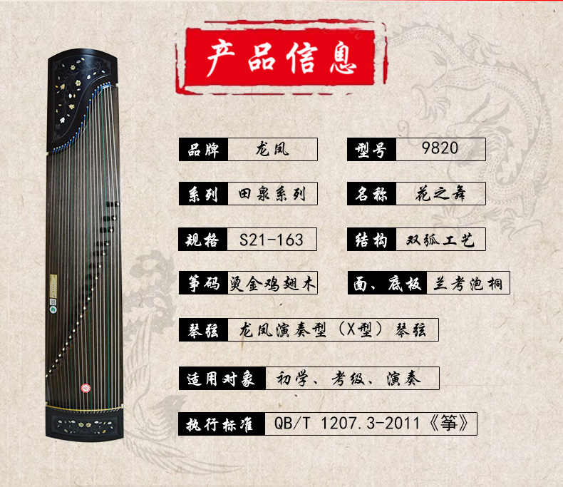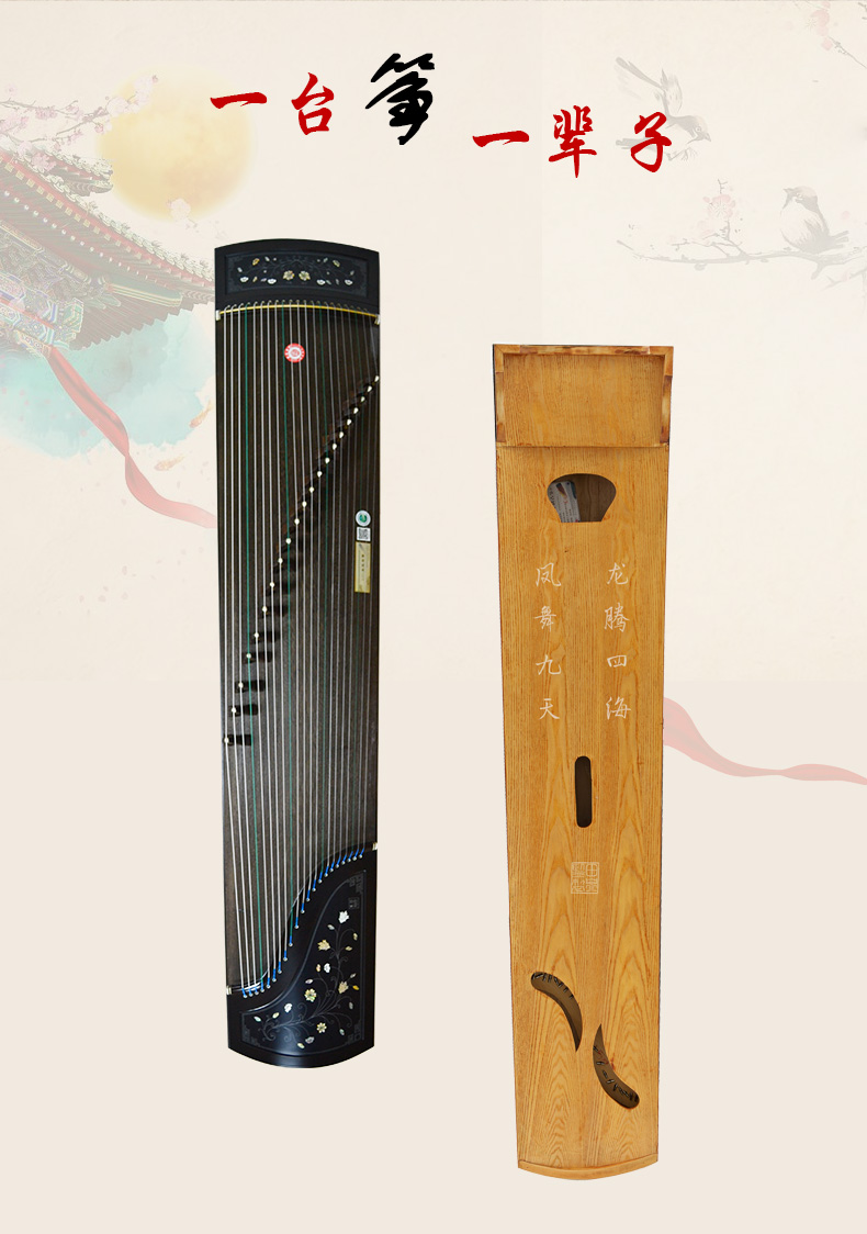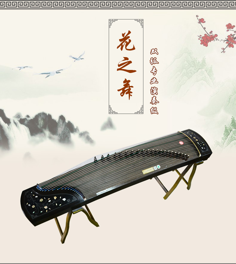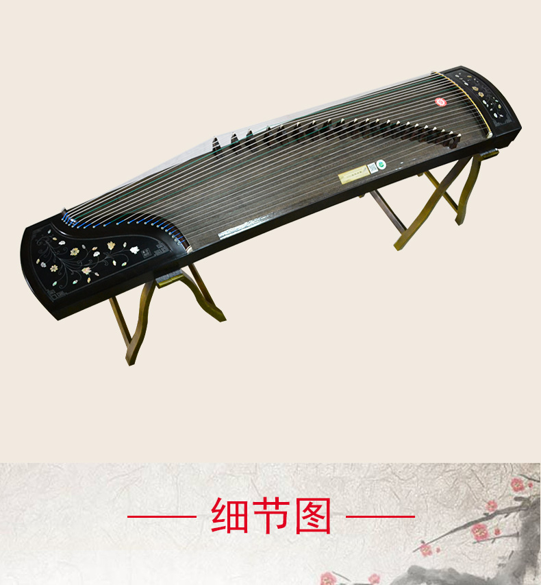 商品名称:龙凤双弧古筝9820田泉系列黑檀嵌螺筝花之舞演奏考级筝