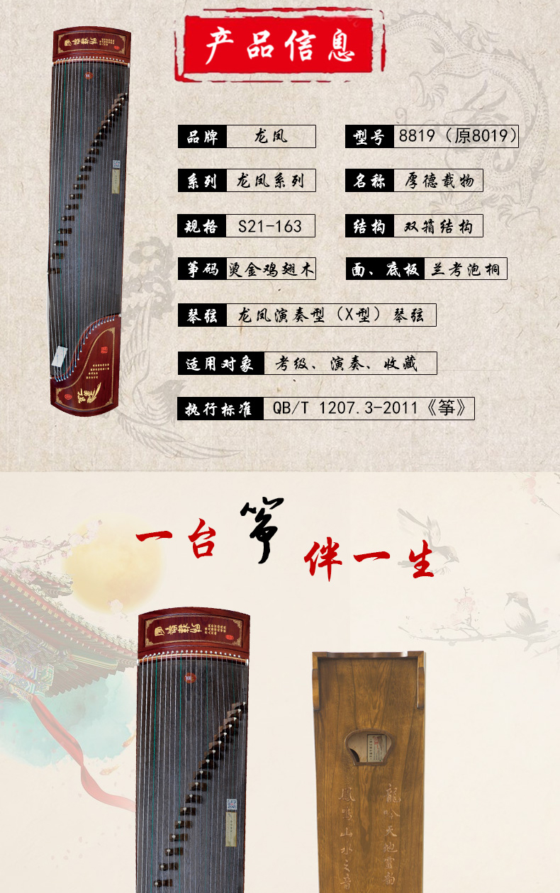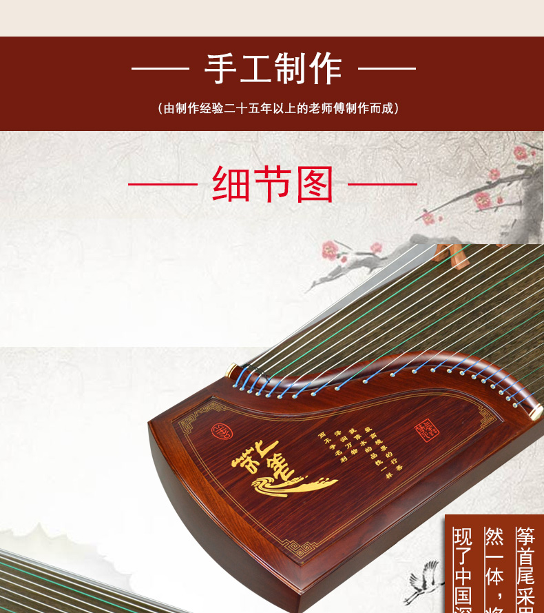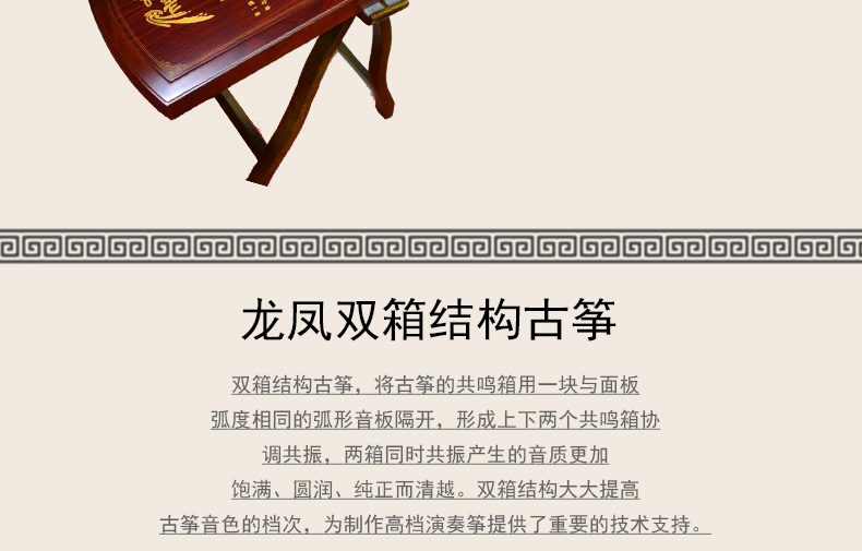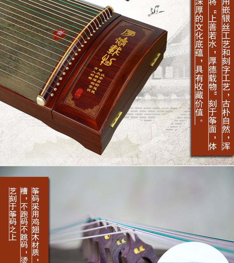 商品名称:龙凤古筝8819原8019红檀刻诗专业演奏筝上善若水双箱结构