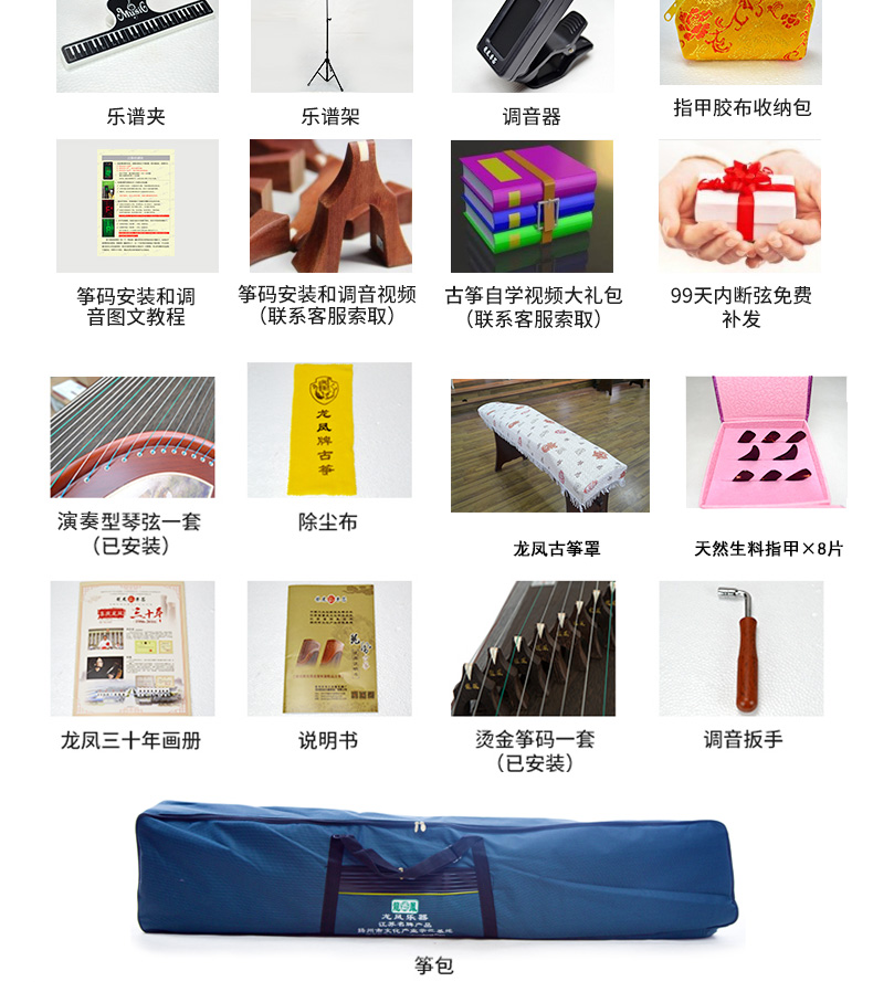 龙凤古筝8819原8019红檀刻诗专业演奏筝上善若水双箱结构