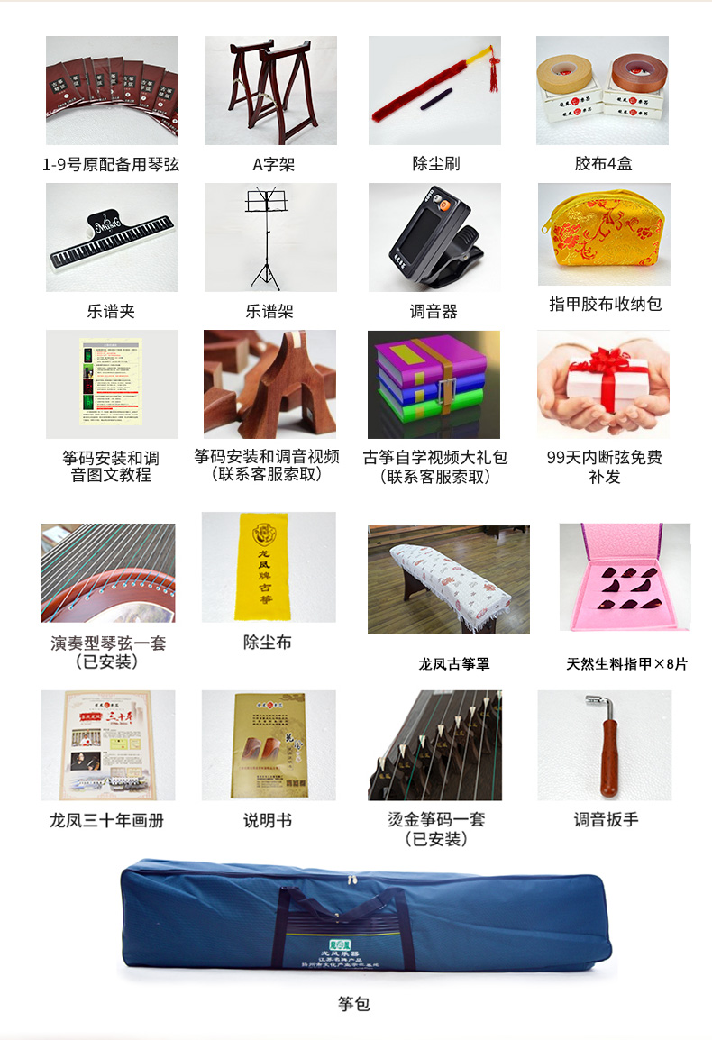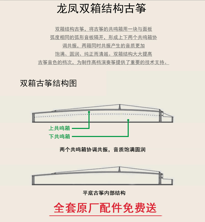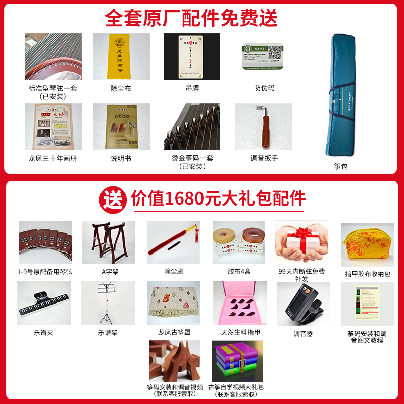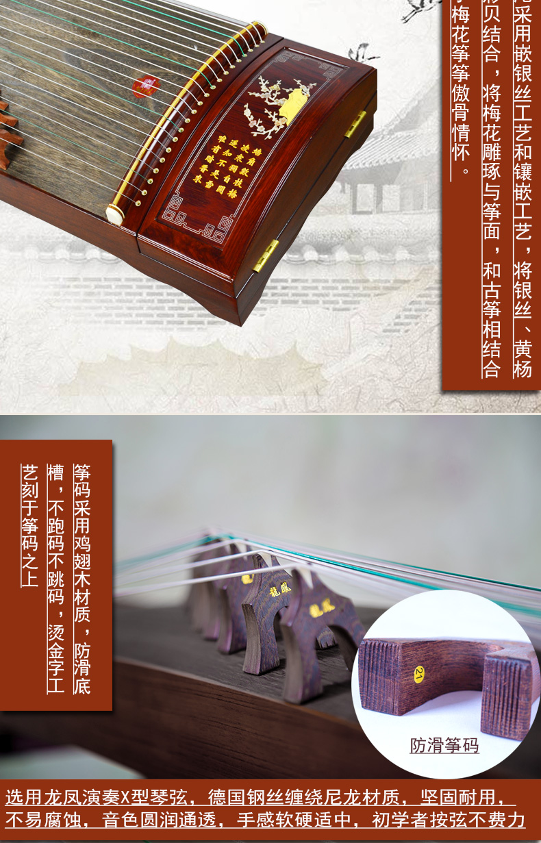 龙凤8818原8018红檀嵌银丝诗词咏梅双箱结构古筝专业考级演奏筝