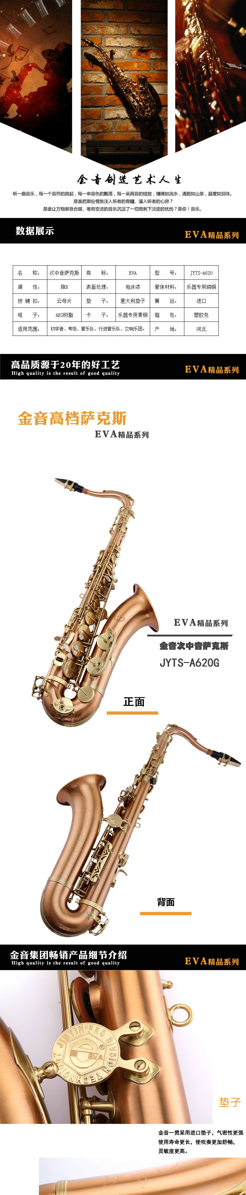 商品名称:金音乐器 次中音萨克斯 降B调 JYTS-A620 唯一厂家自营 防伪