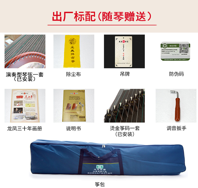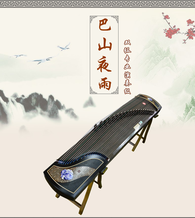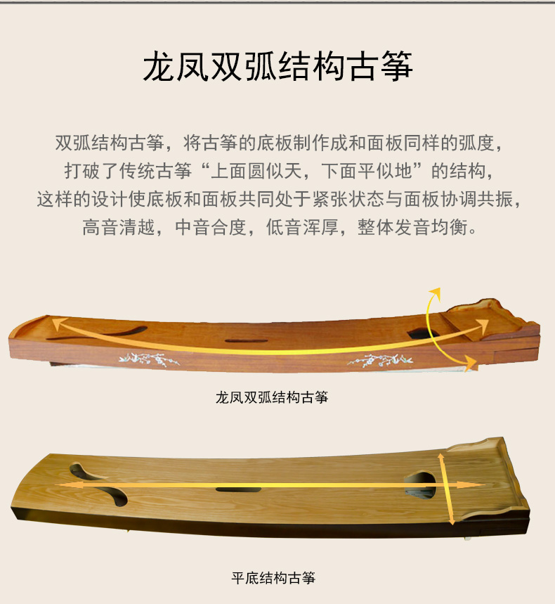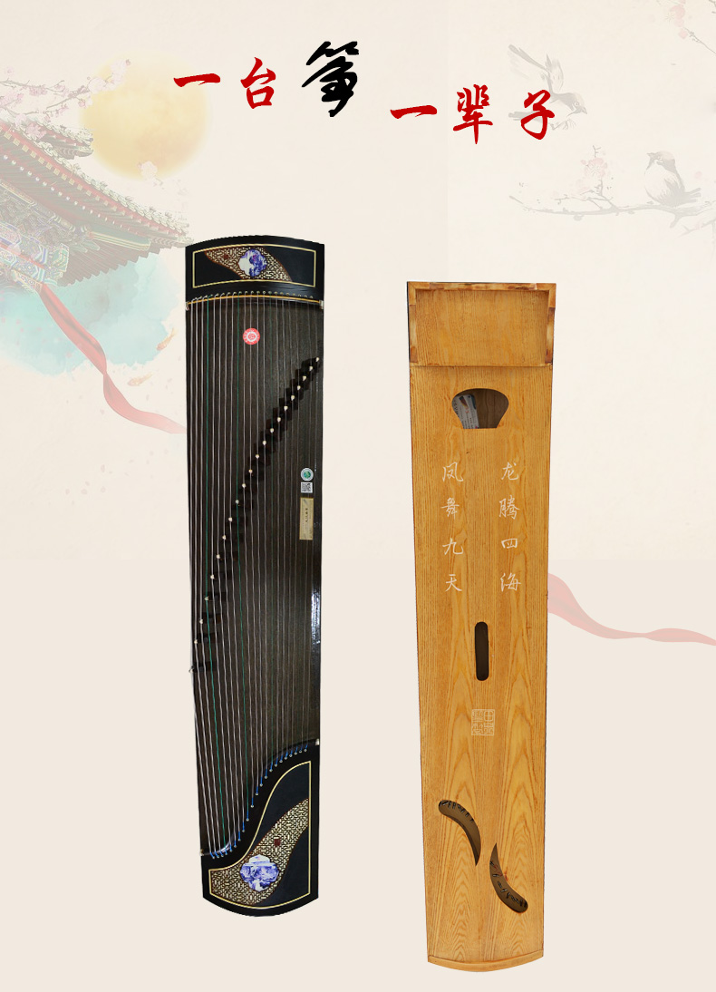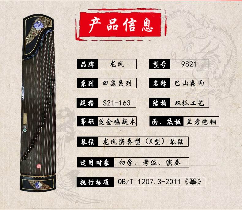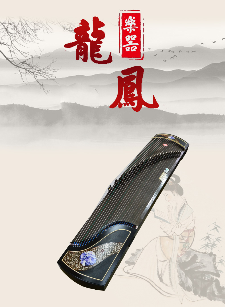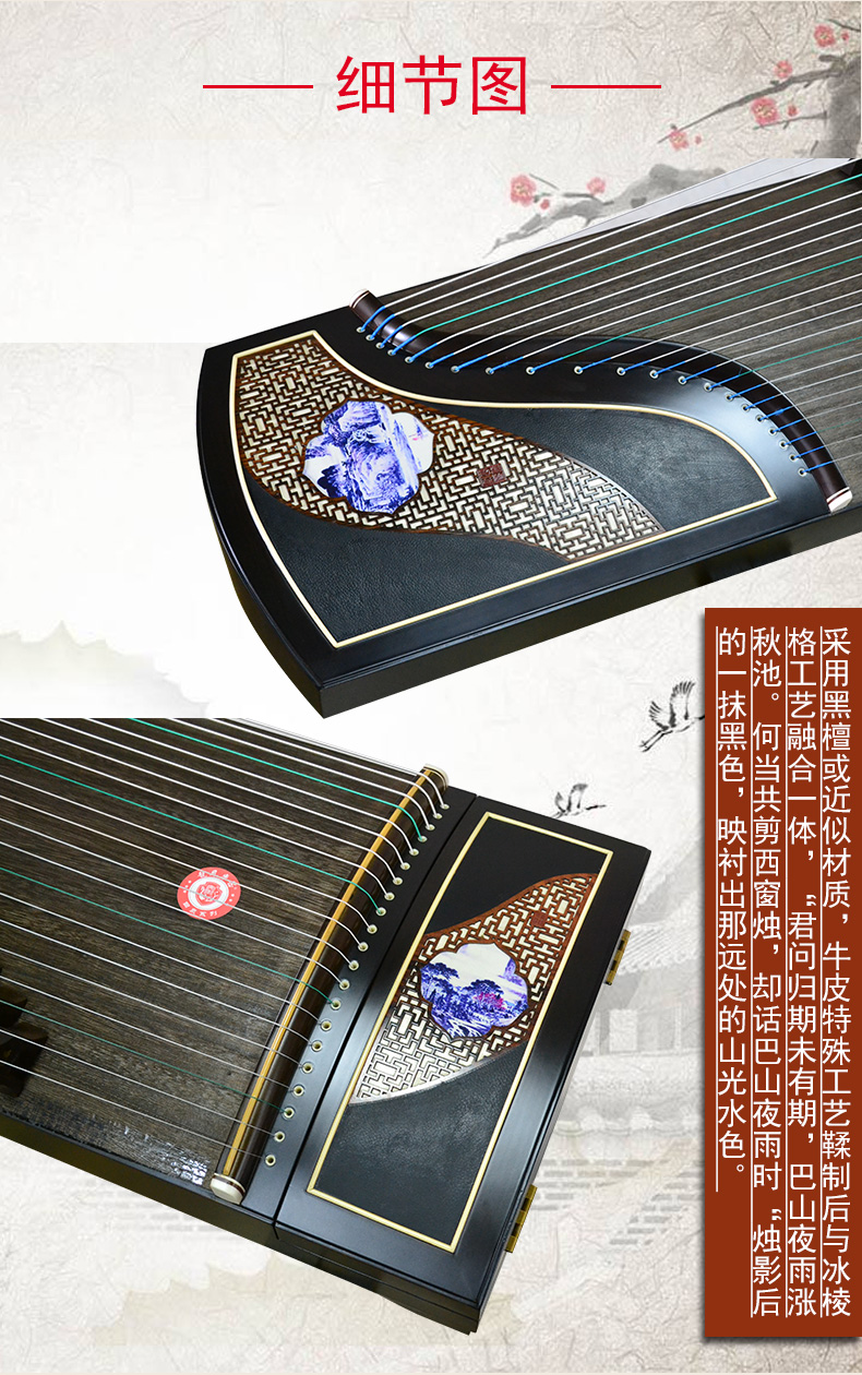 商品名称:龙凤双弧古筝9821田泉系列黑檀鞣皮工艺筝巴山夜雨演奏筝