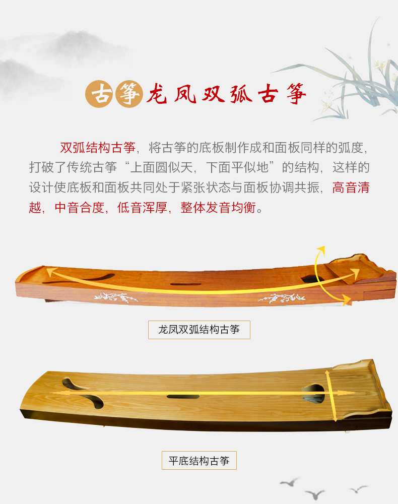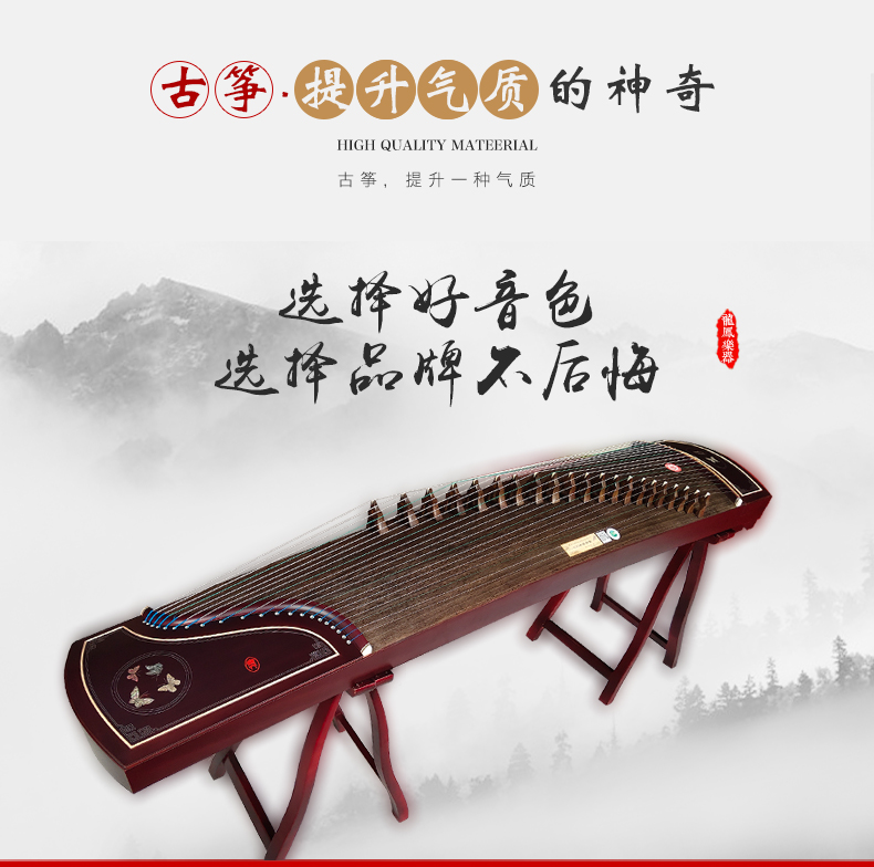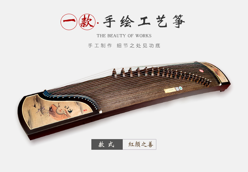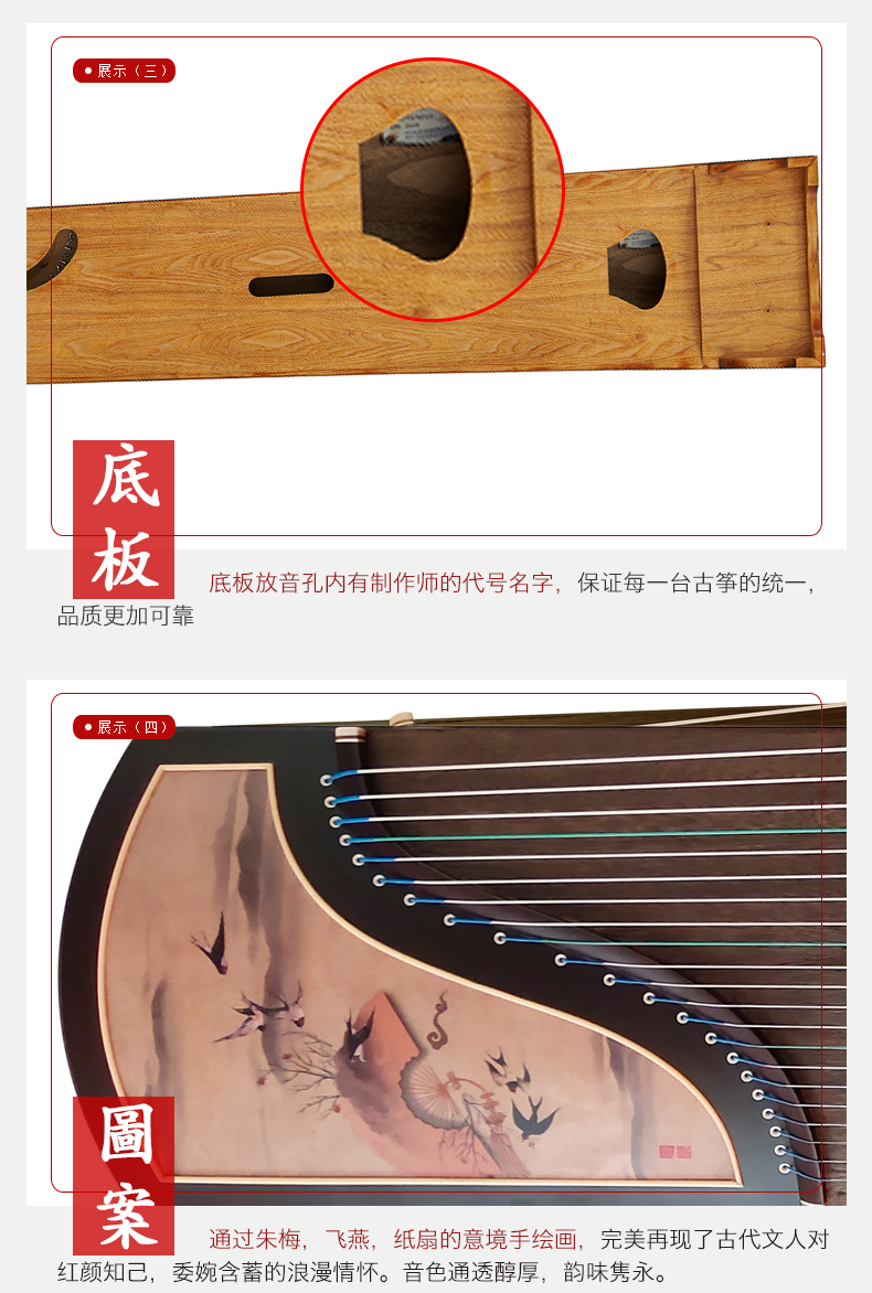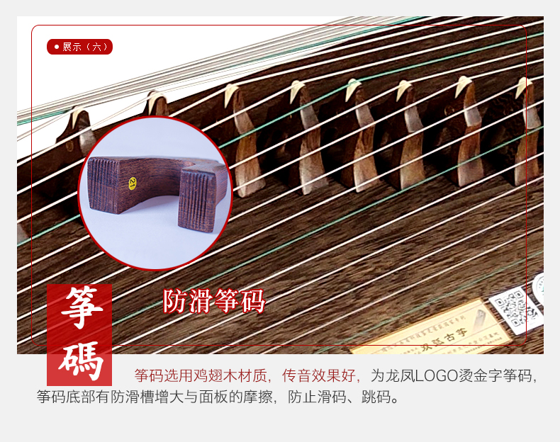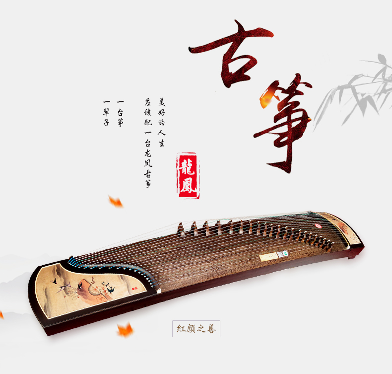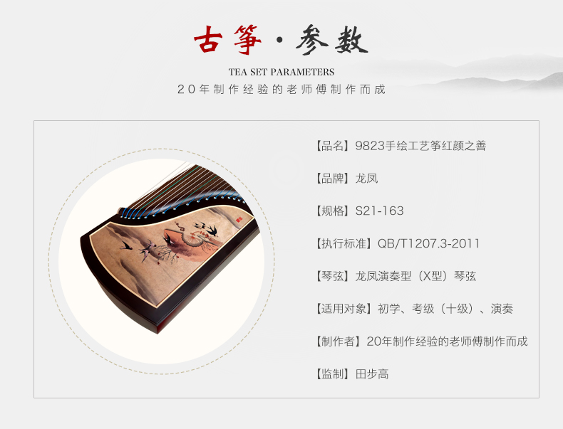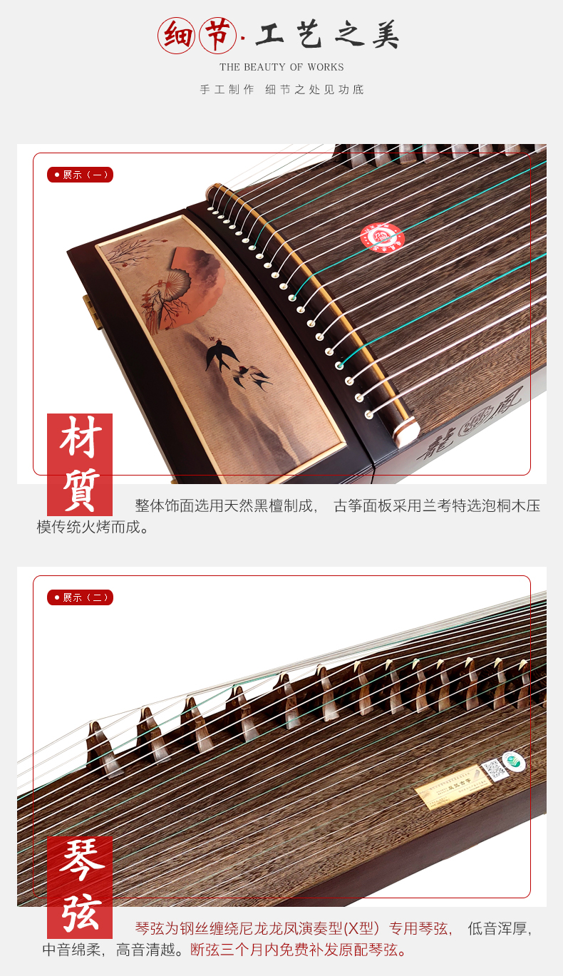 商品名称:龙凤古筝田泉系列9823黑檀工艺筝 红颜之善演奏级古筝