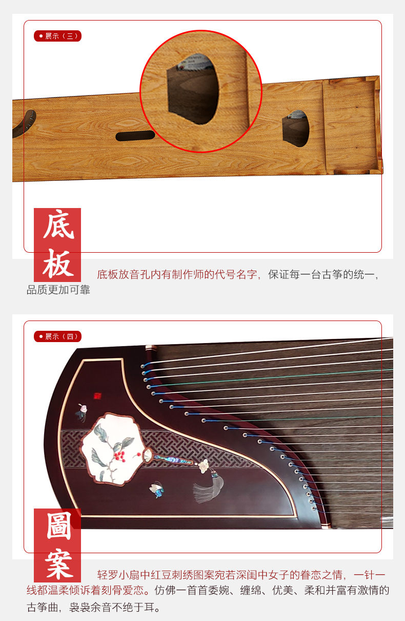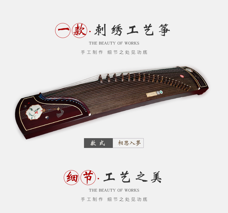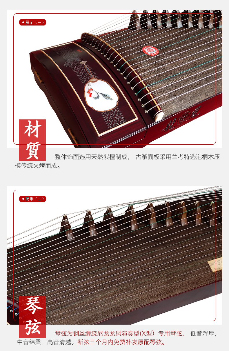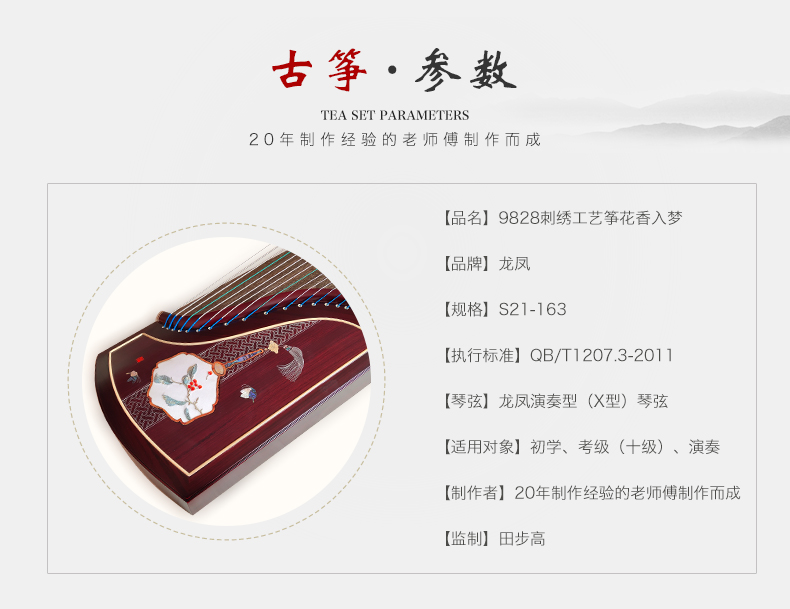 商品名称:龙凤古筝田泉系列9828紫檀刺绣筝花香入梦演奏级古筝