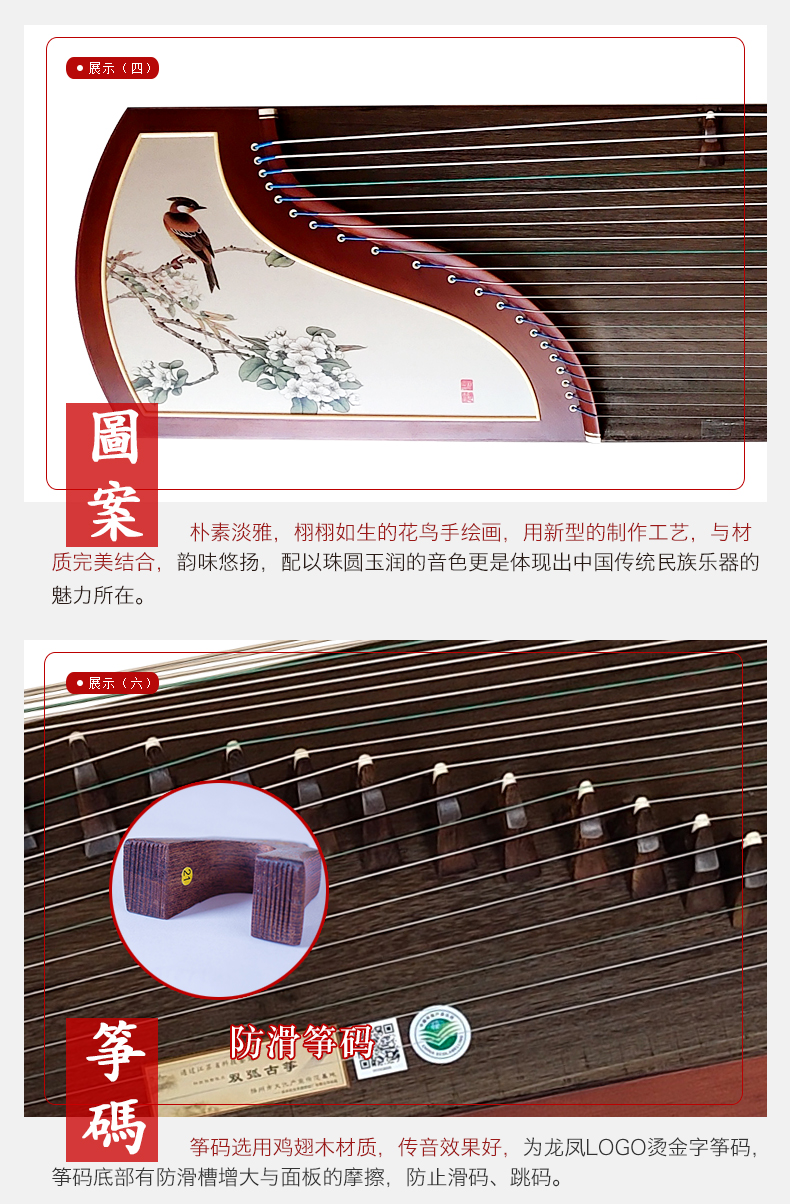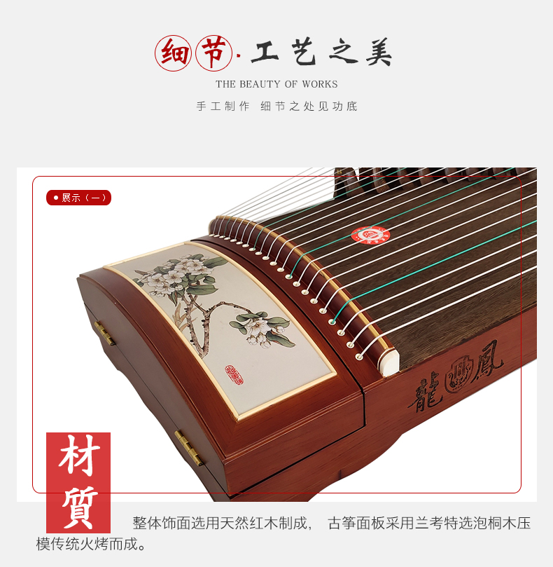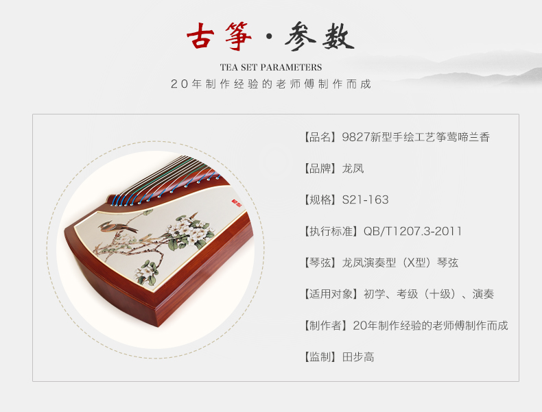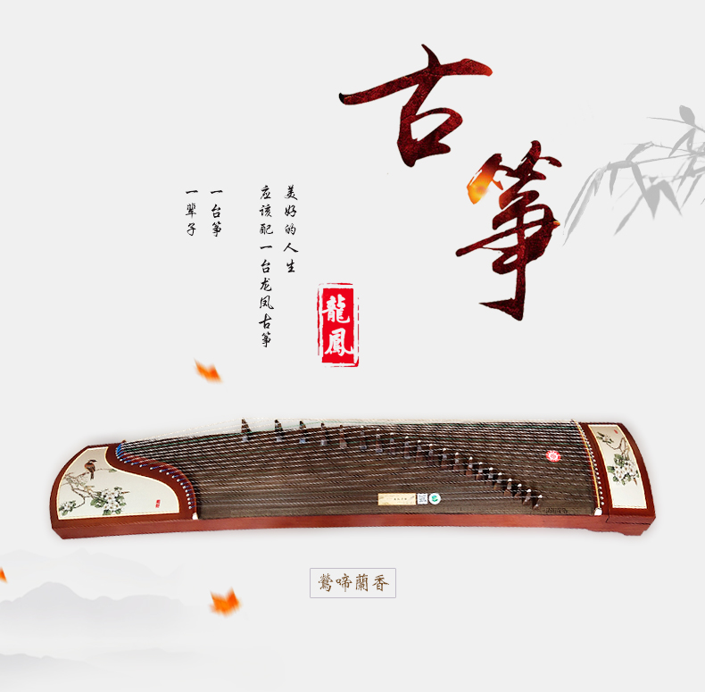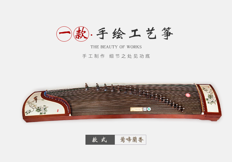 商品名称:龙凤古筝田泉系列9827红木手绘筝 莺啼兰香演奏级古筝