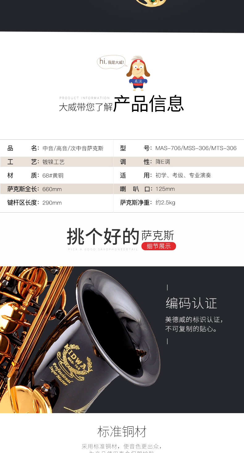 商品名称:美德威黑镍降E调中音萨克斯风/管成人初学者高音次中音萨克斯乐器