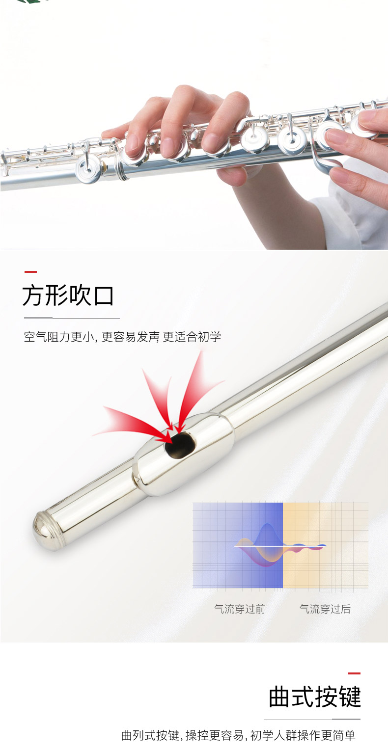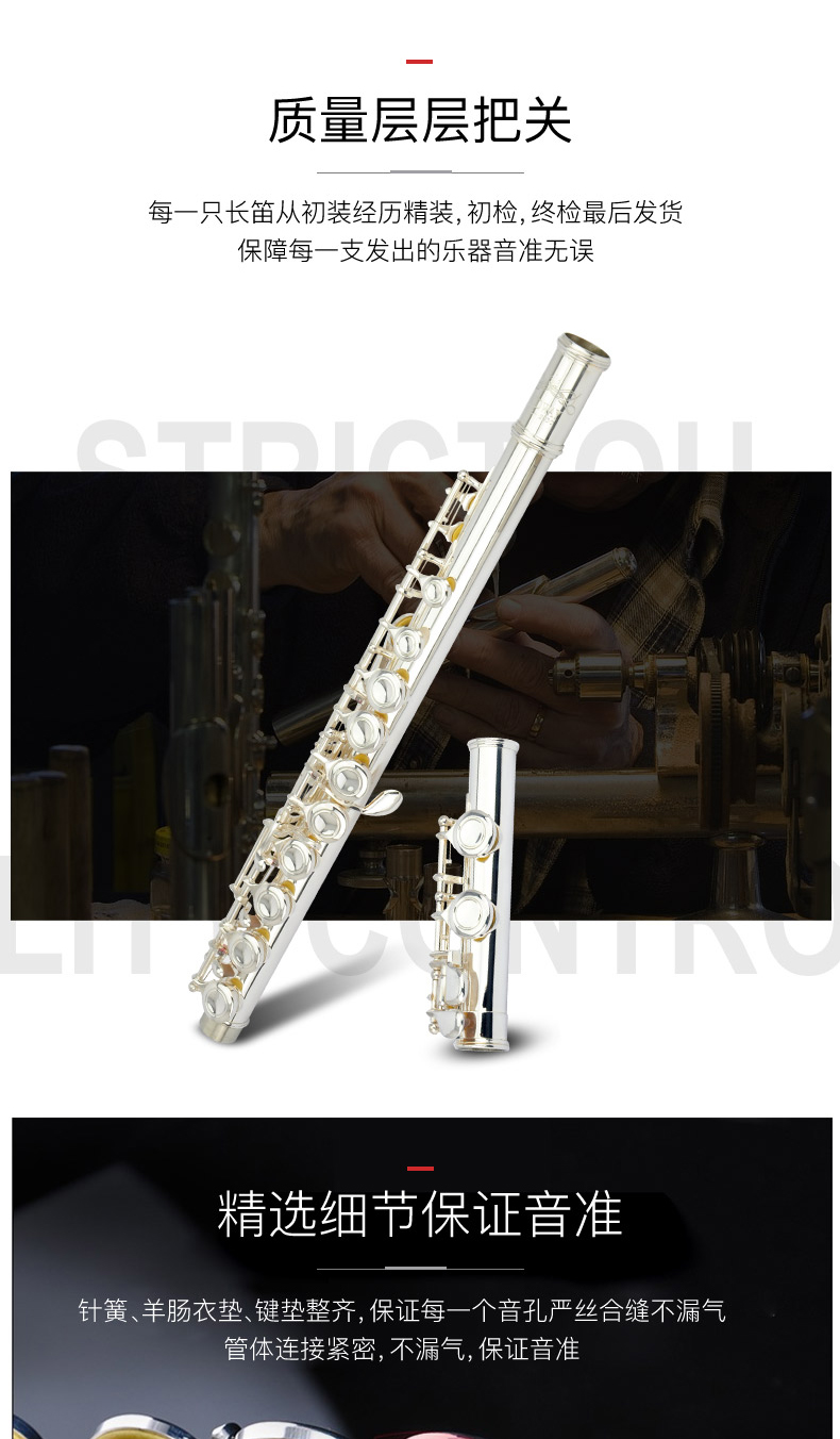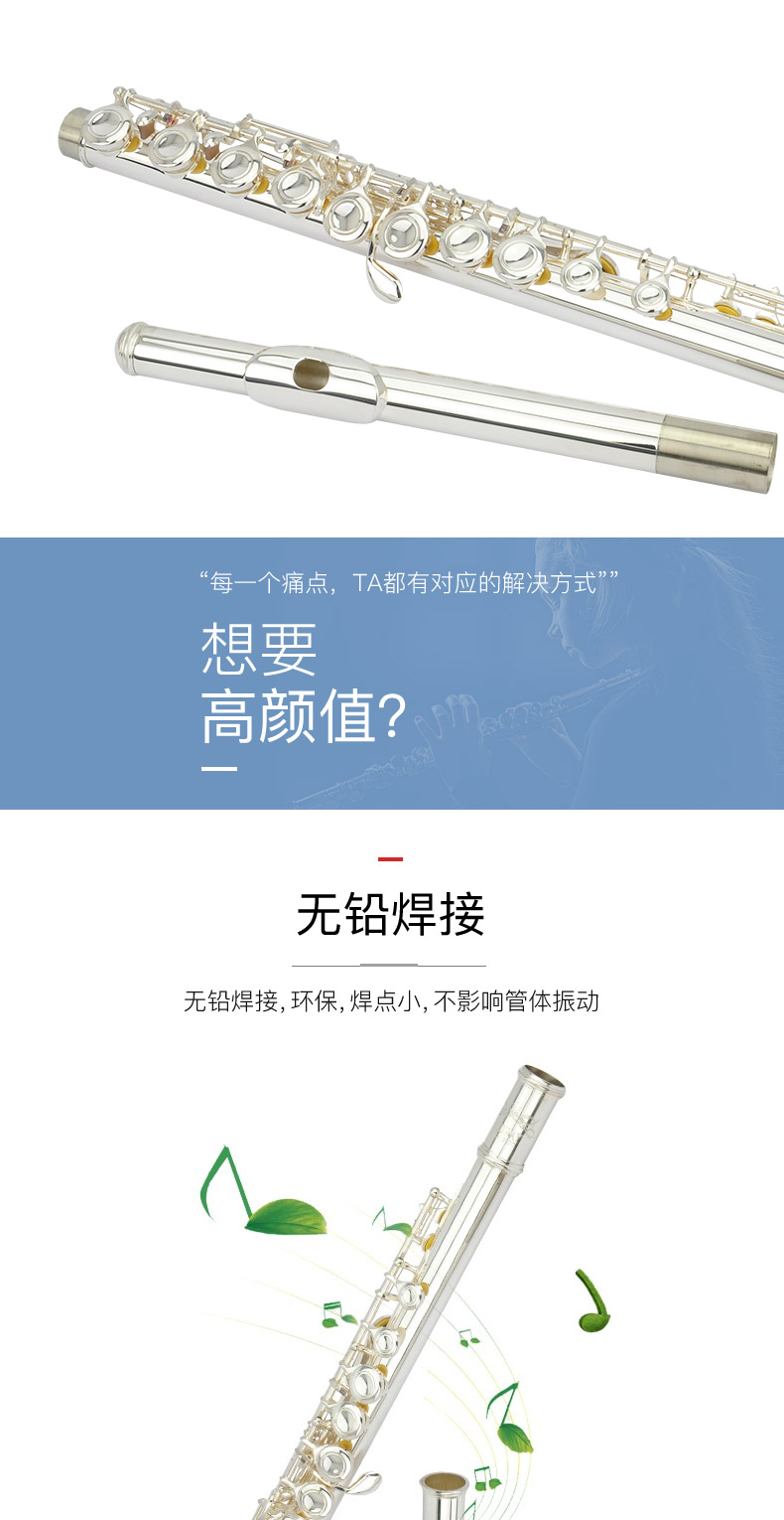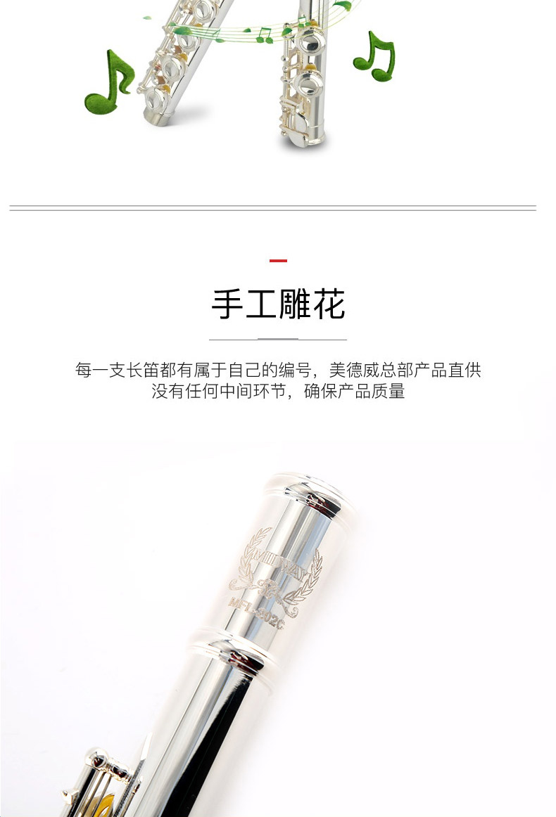 商品名称:美德威16孔开闭孔镀银长笛乐器初学笛子学生成人专业乐器MFL-203C