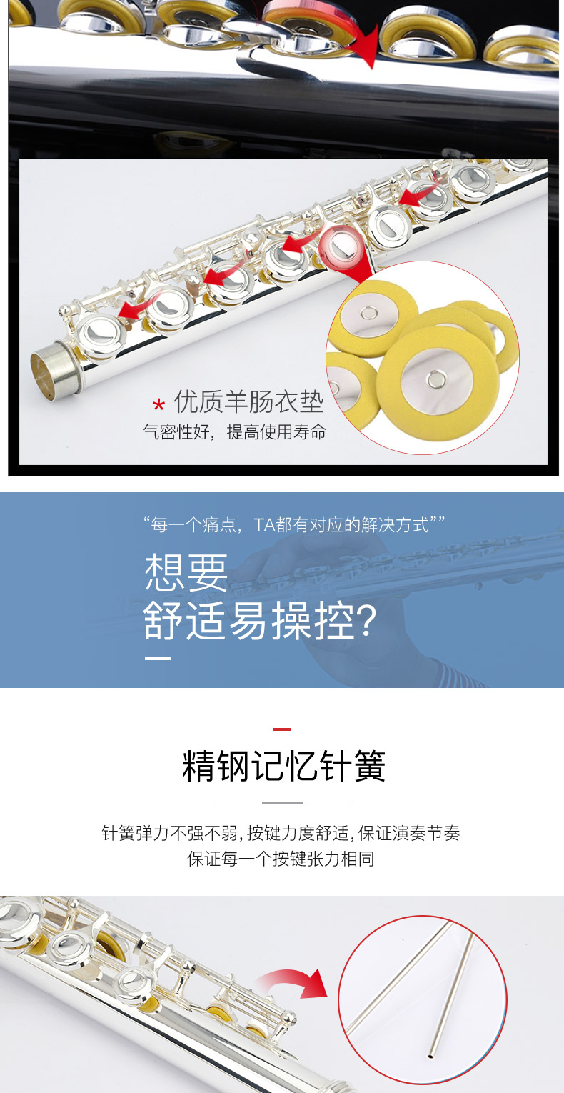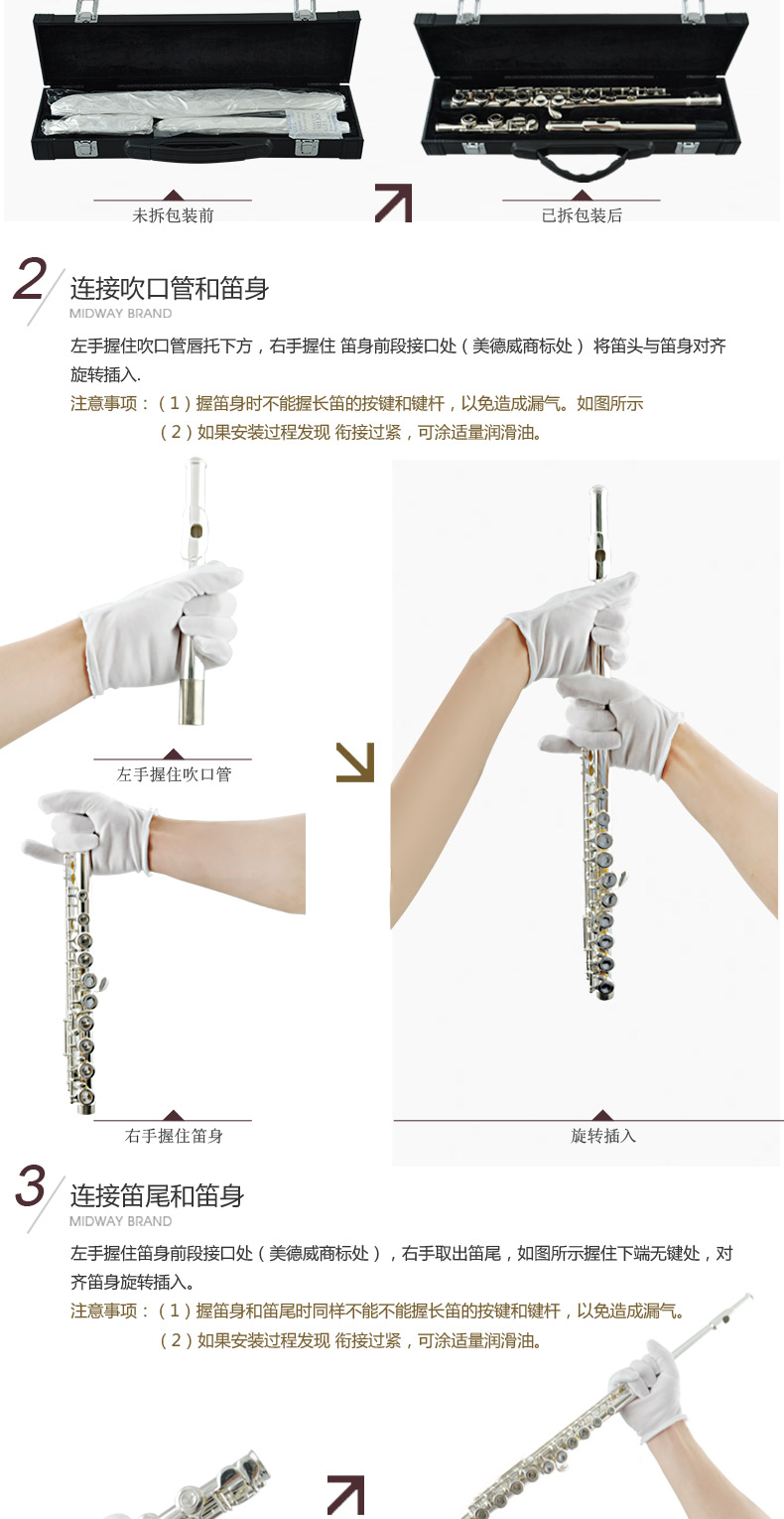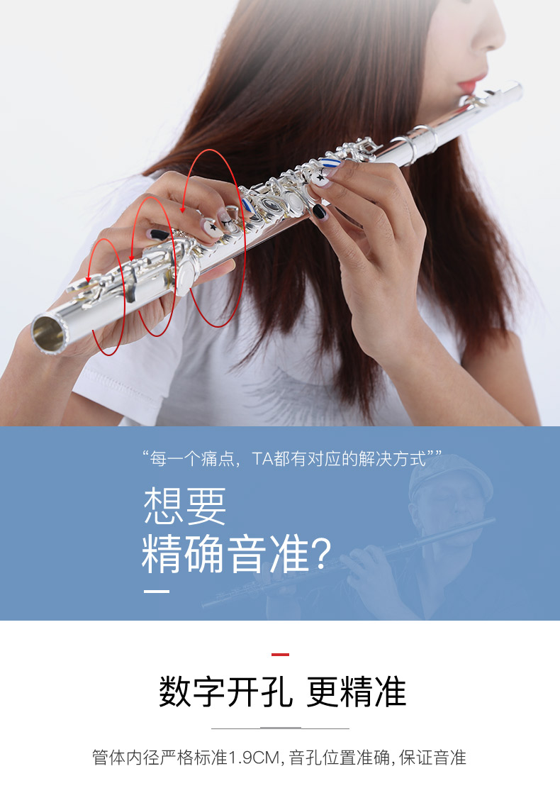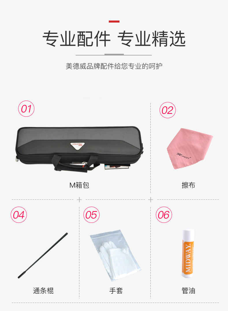 商品名称:美德威16孔开闭孔镀银长笛乐器初学笛子学生成人专业乐器MFL-203C