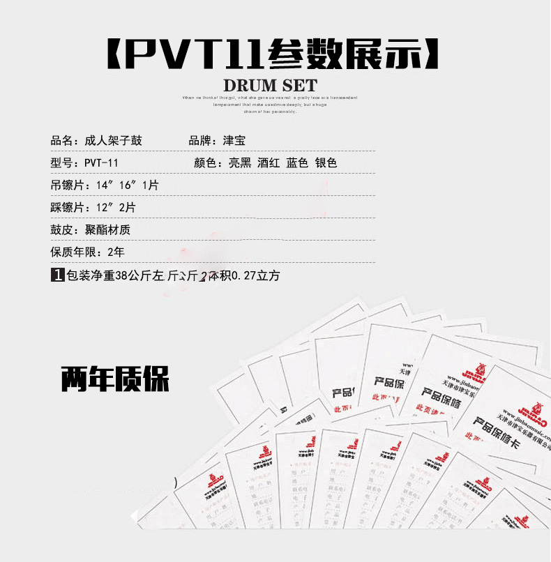 商品名称:津宝JBPVT-11 品牌 架子鼓 成人鼓爵士鼓 黄铜镲片