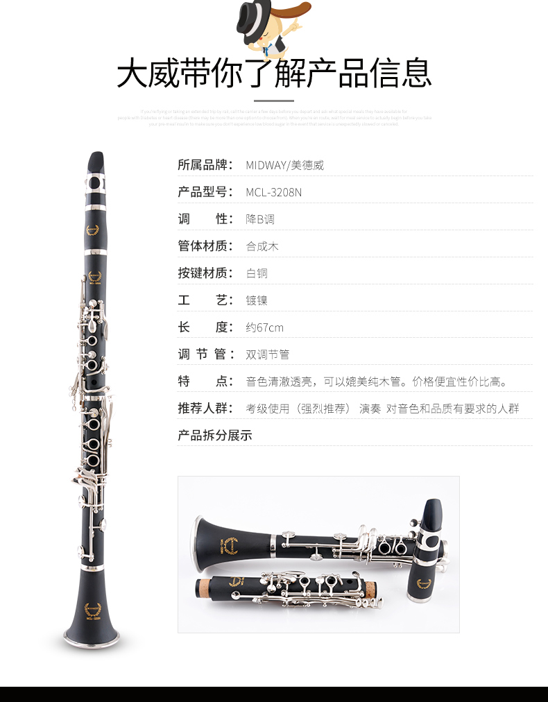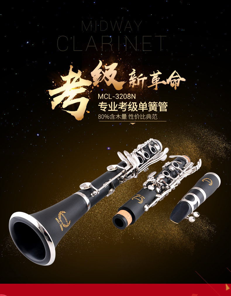 商品名称:MCL-3208N降B调单簧管乐器单簧管乐器 黑管 单簧管乐器 美德威