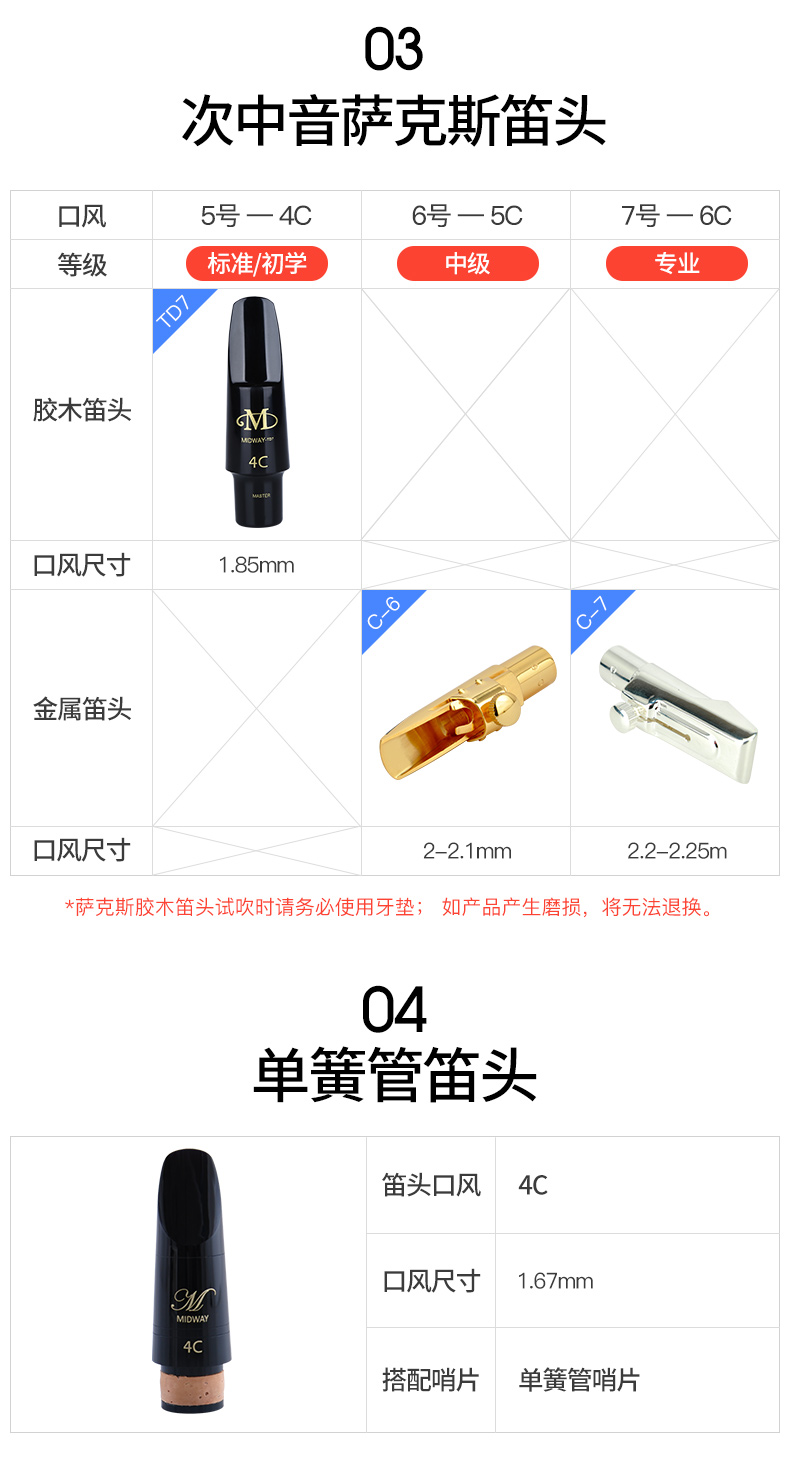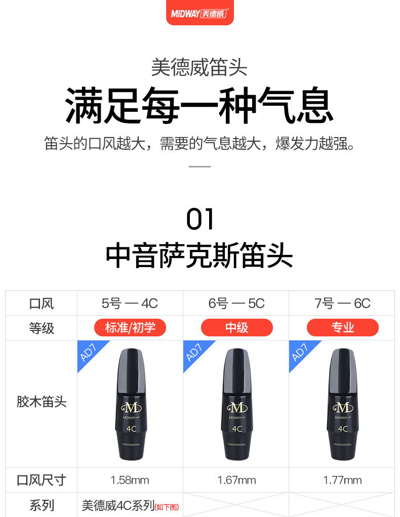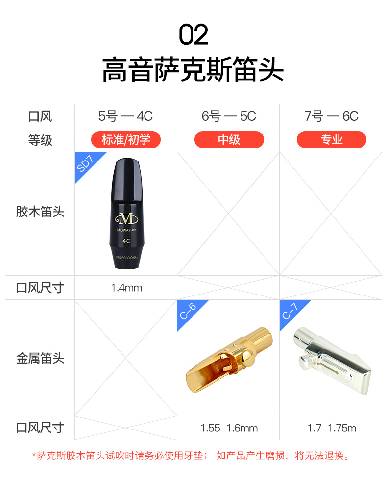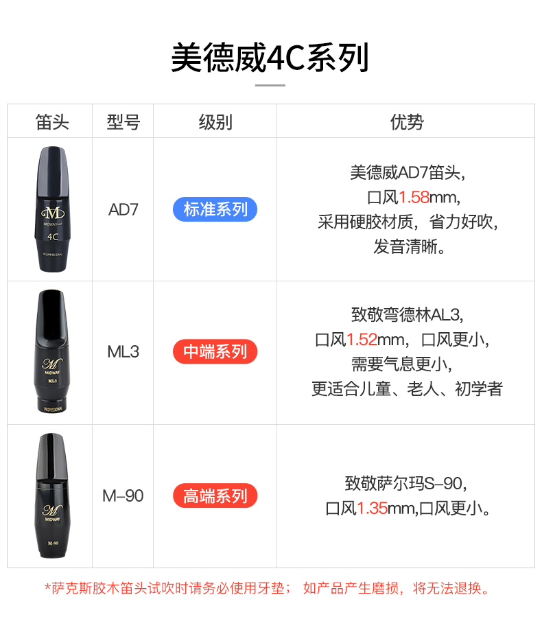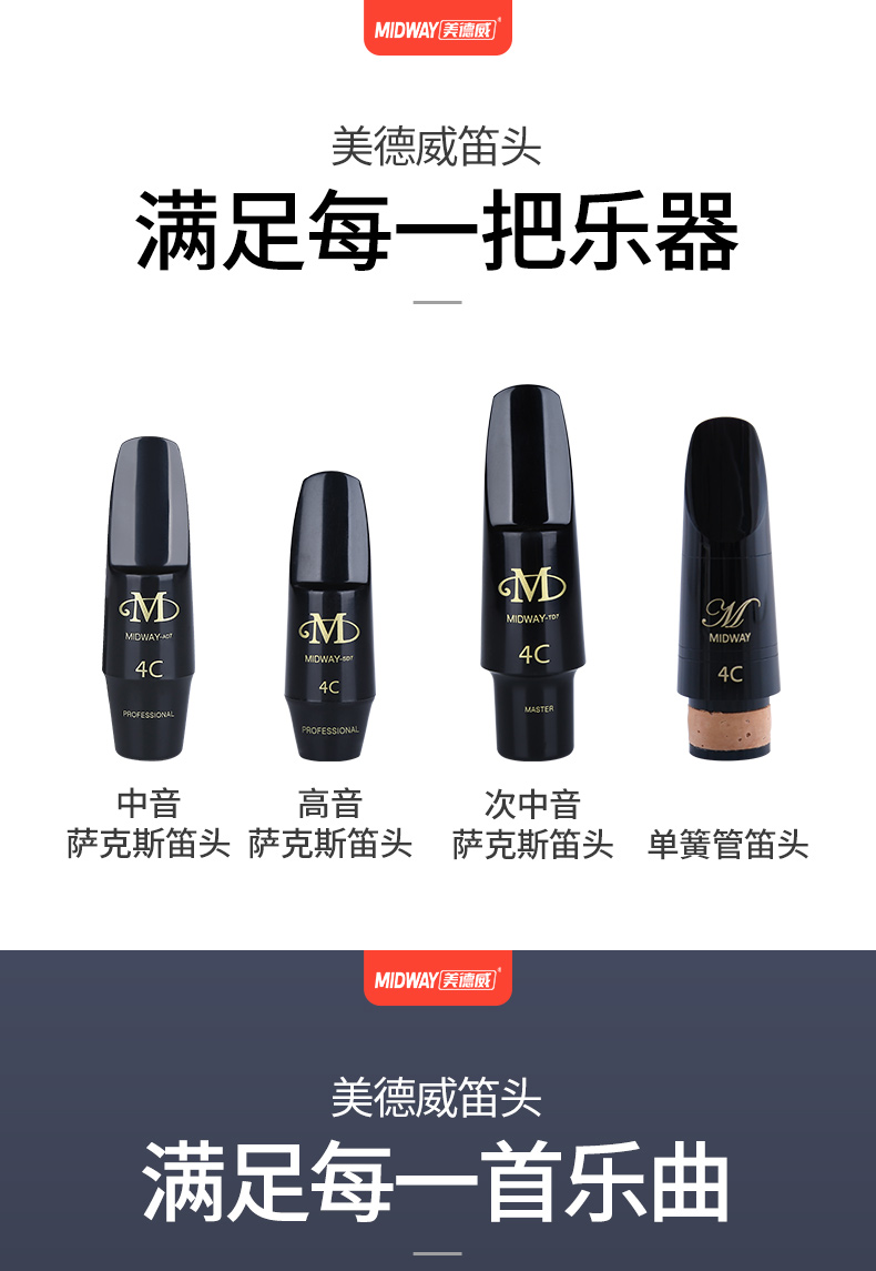 商品名称:美德威高音次中音降e调中音萨克斯金属笛头单簧管萨克斯胶木笛头