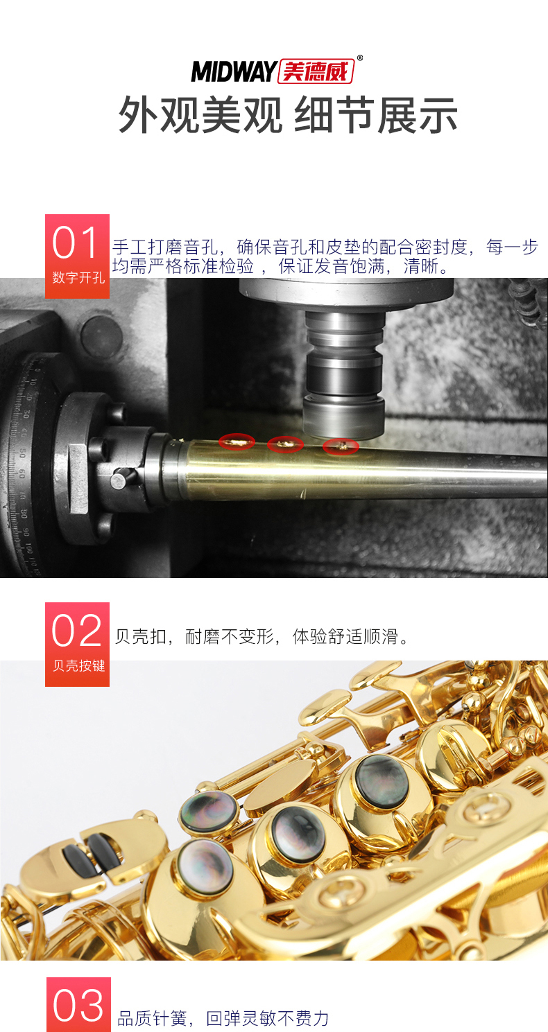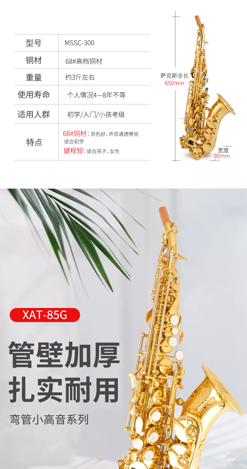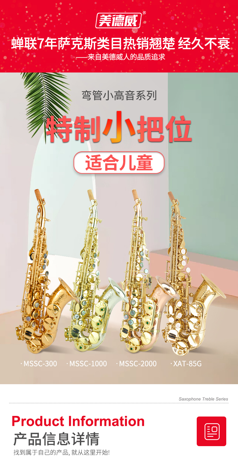 商品名称:美德威小高音儿童型萨克斯 高音弯管萨克斯风/管MSSC-300