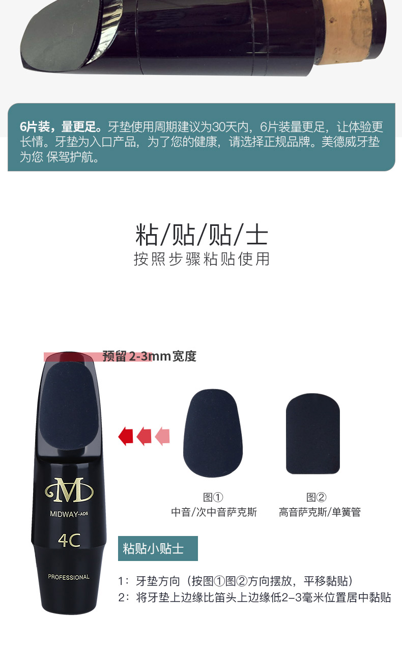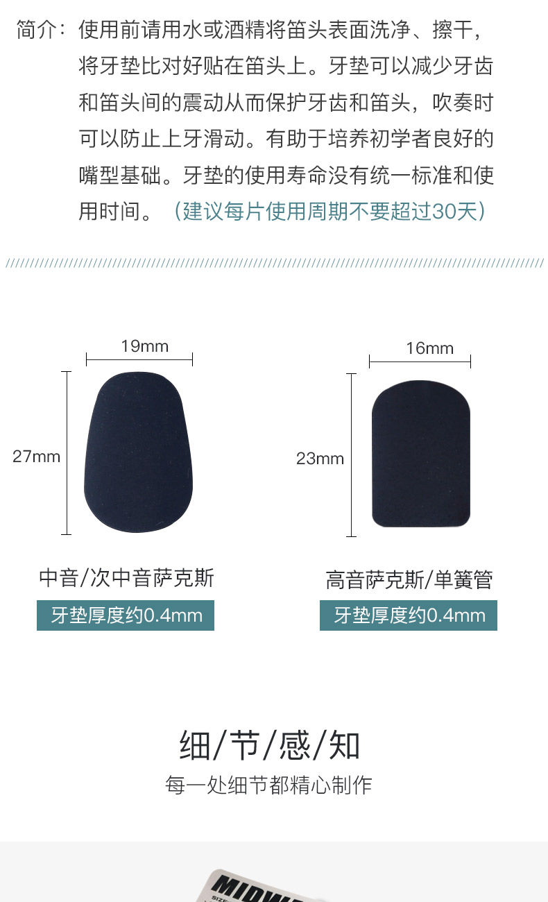商品名称:美德威萨克斯中/高/次中音笛头牙垫单簧管黑管笛头牙垫乐器配件