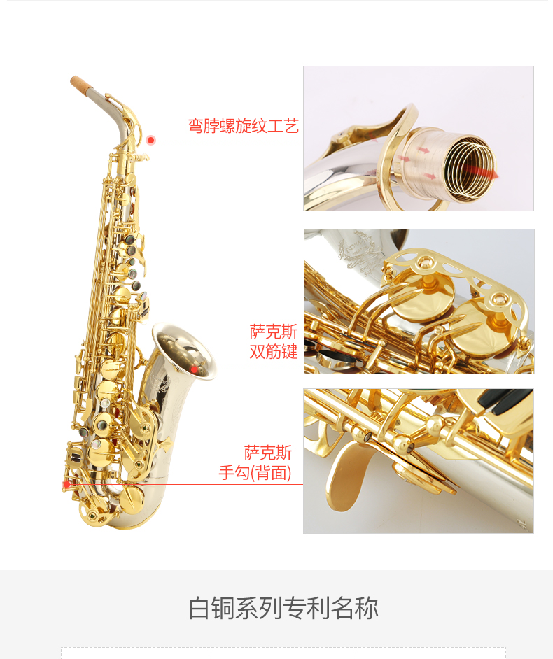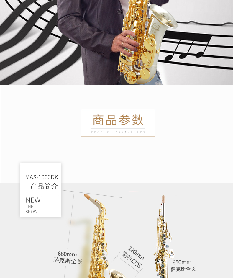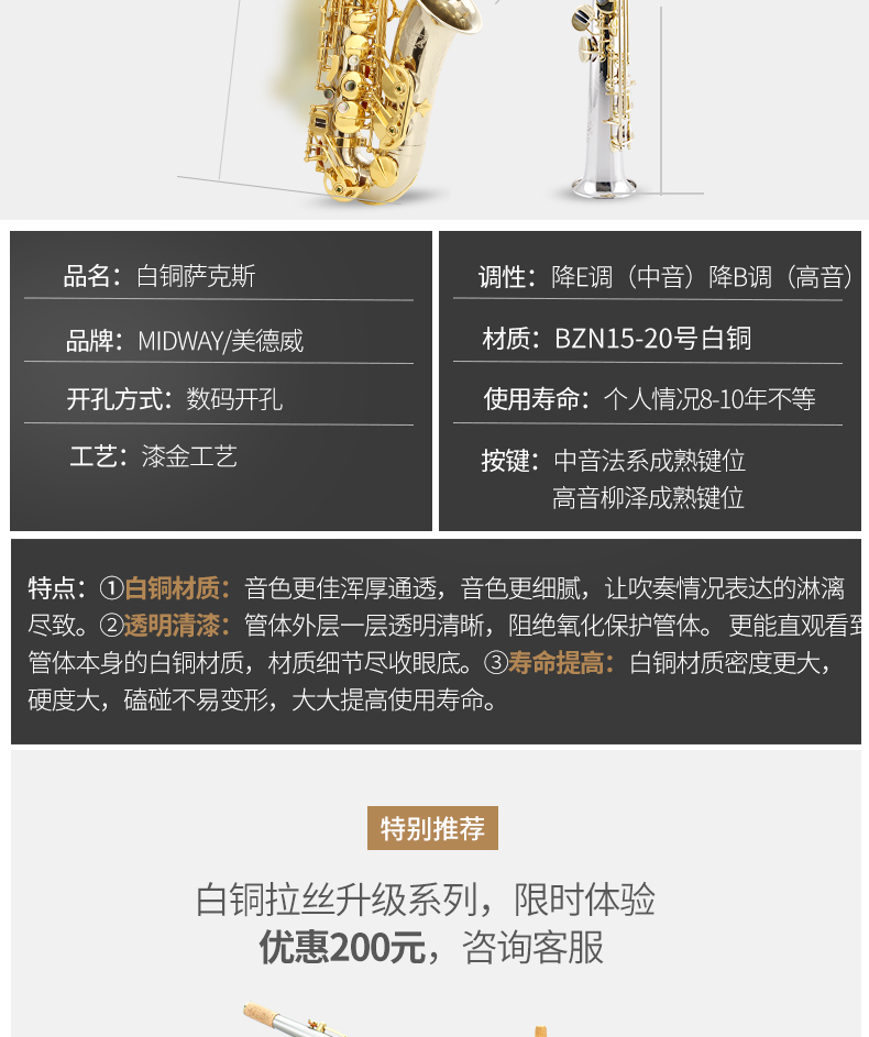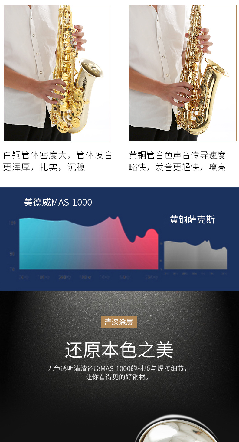 商品名称:萨克斯美德威乐器MAS-1000降E调白铜中音高音萨克斯管西洋乐器