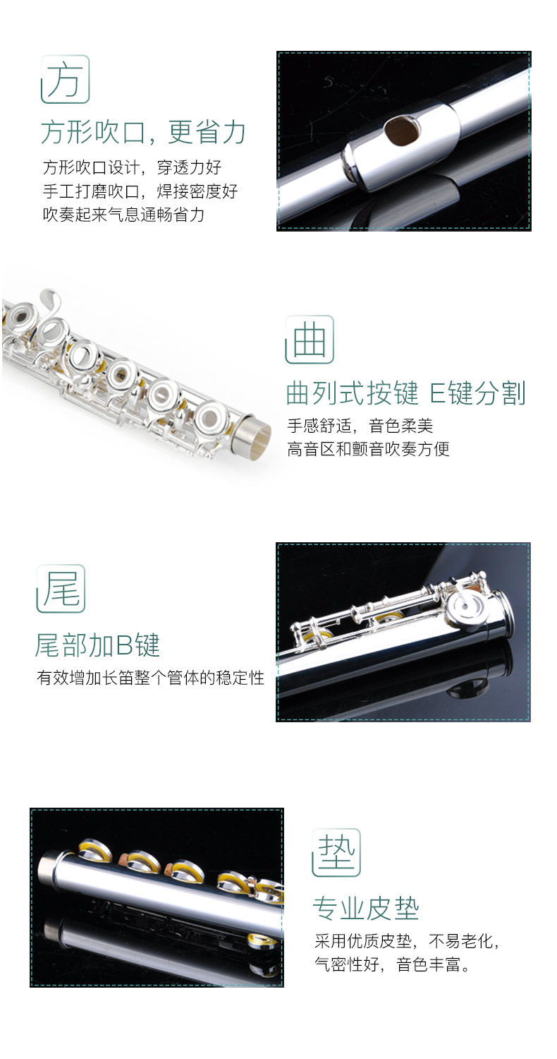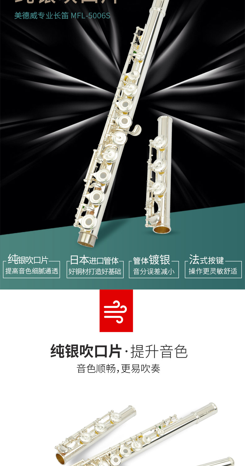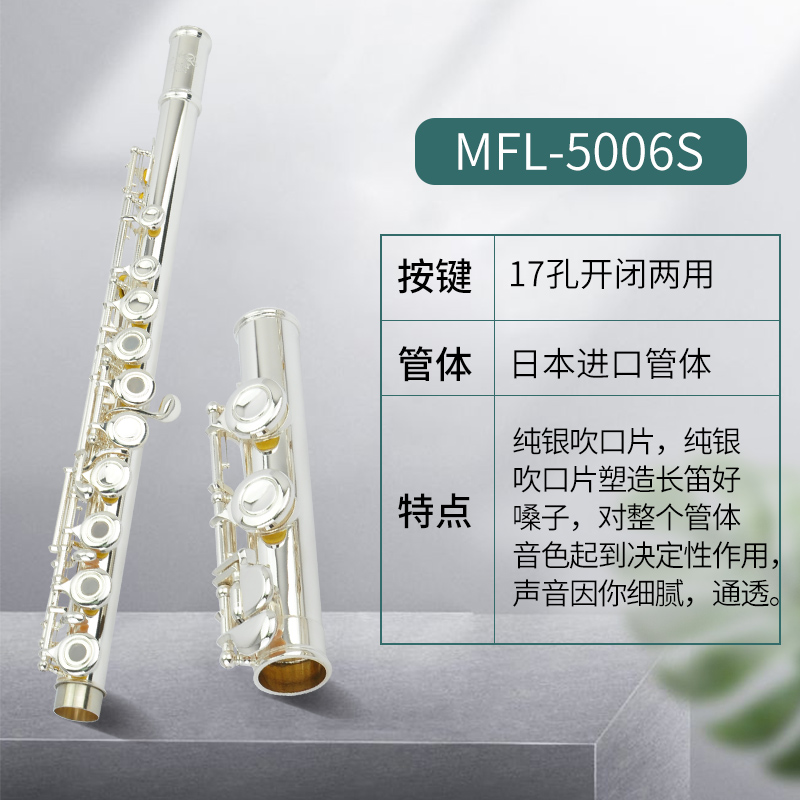 商品名称:专业16闭17开闭镀银日本管体长笛纯银吹口片美德威MFL-5006S