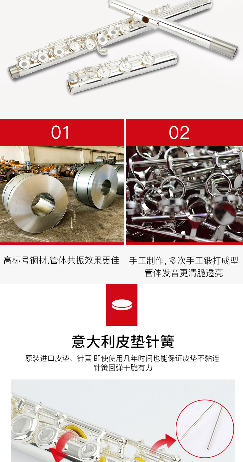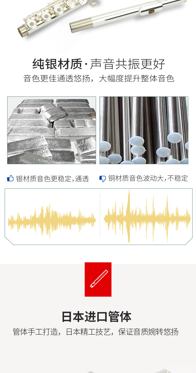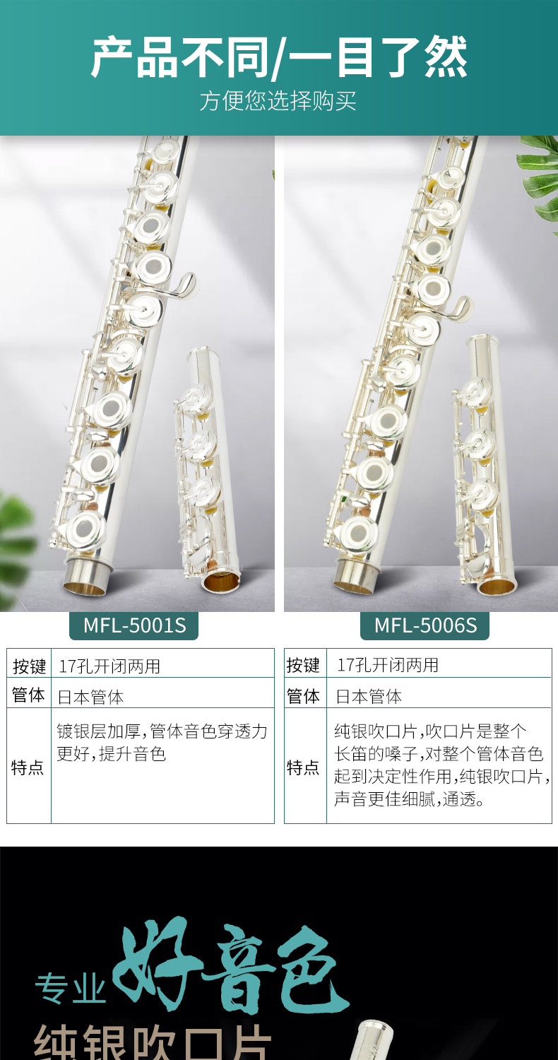商品名称:专业16闭17开闭镀银日本管体长笛纯银吹口片美德威MFL-5006S