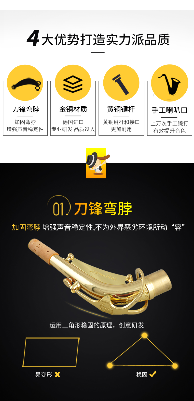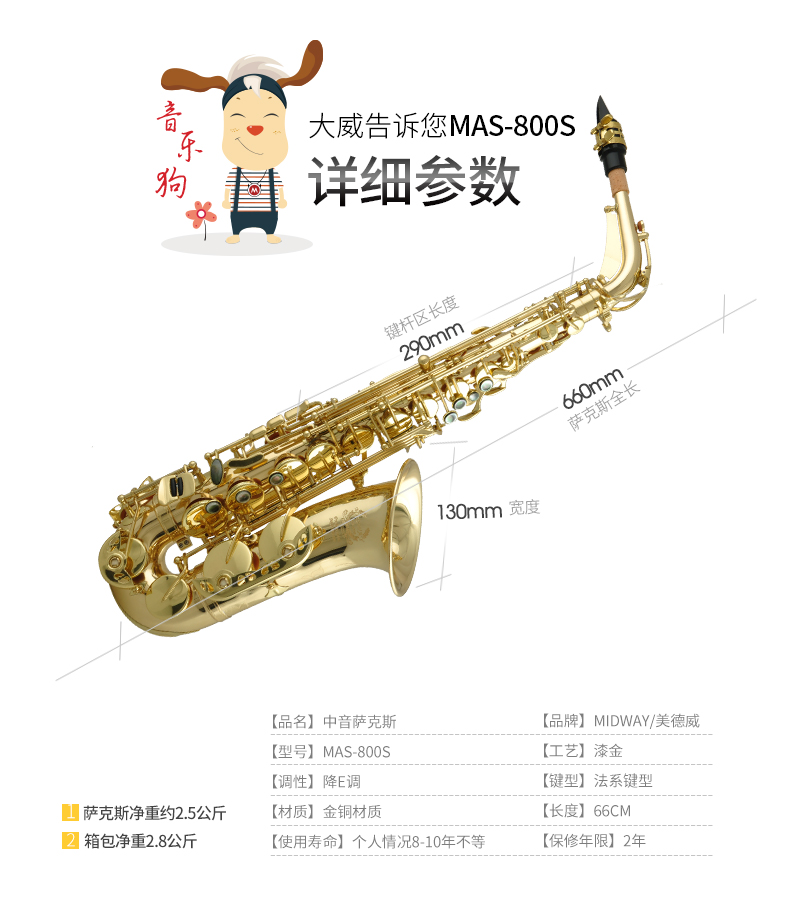 商品名称:美德威MSS-800S德国金铜降e调中音萨克斯风降B调一体高音萨克斯