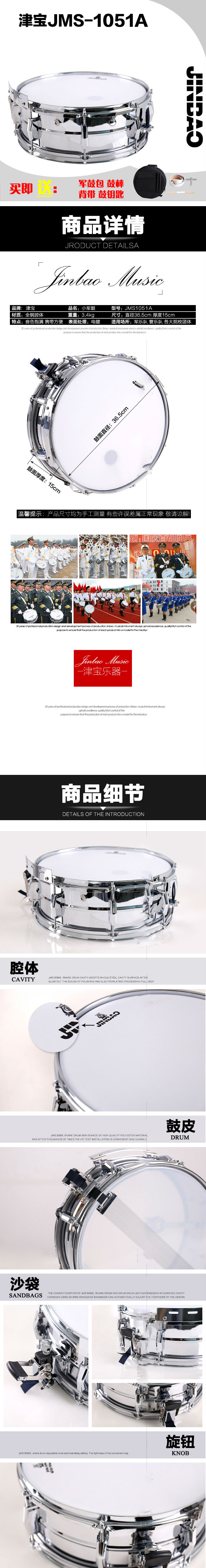 商品名称:正品津宝JBS-1051A军乐队 鼓乐队 小军鼓 小队鼓 鼓棒钥匙