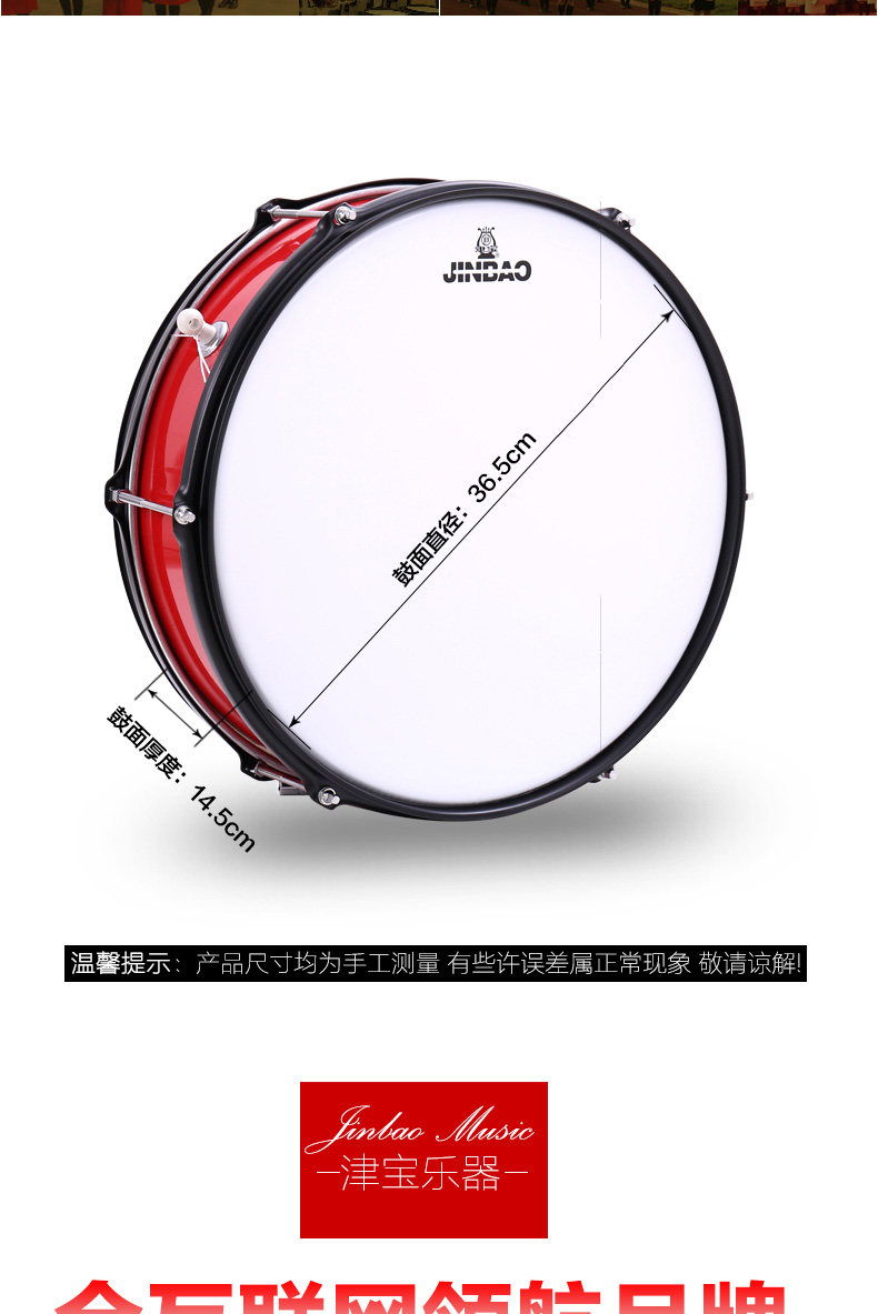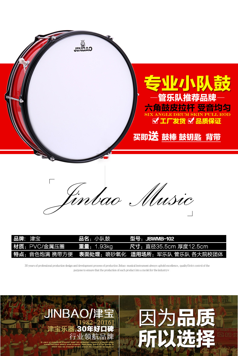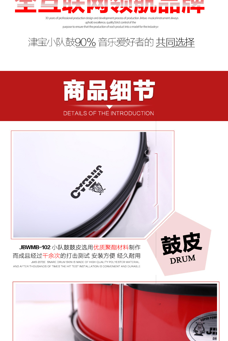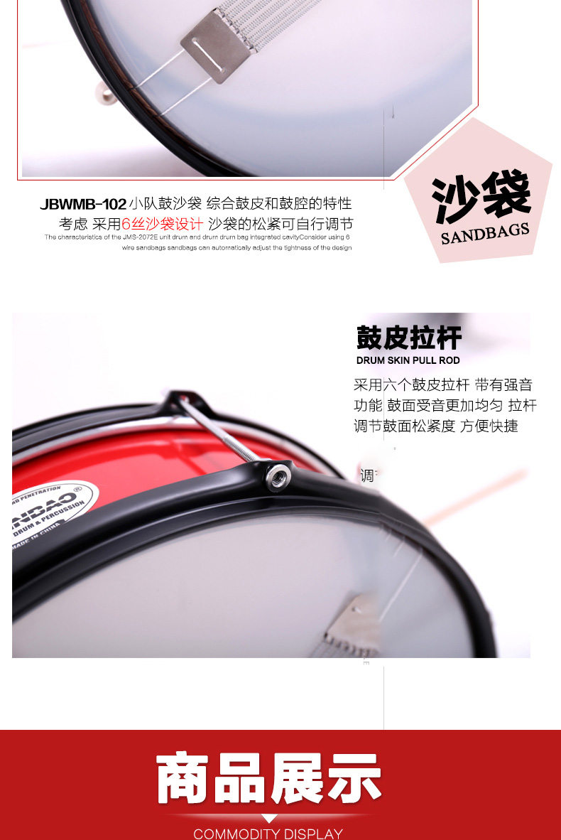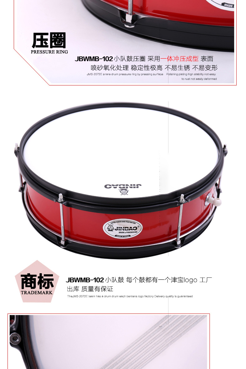 商品名称:津宝JBWMB-102 小队鼓 小军鼓 送鼓棒挂带鼓钥匙