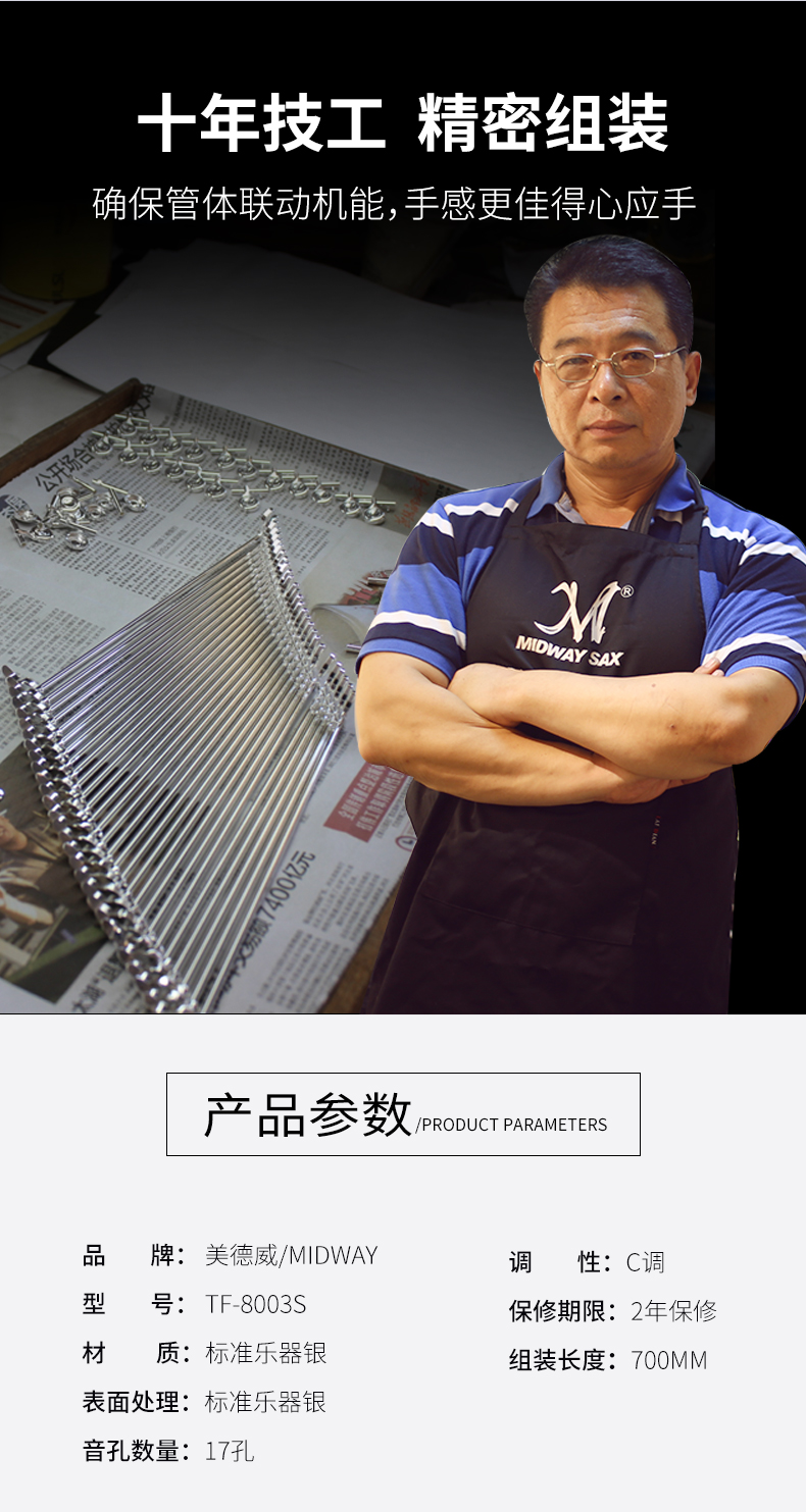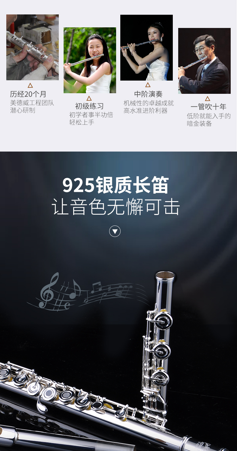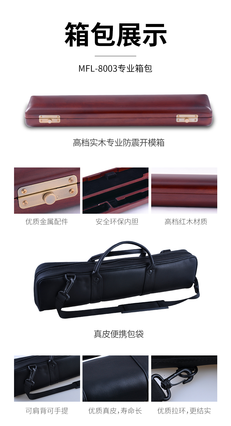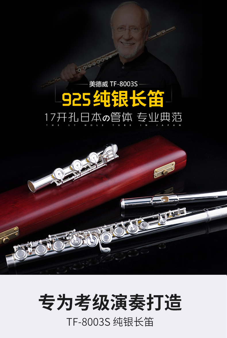 商品名称:美德威 纯银长笛8003S 专业笛子 乐器正品 法式按键 17开孔长笛