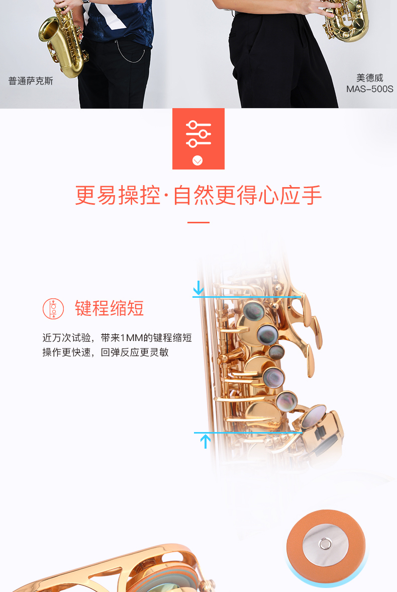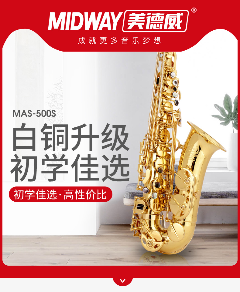 美德威中音萨克斯乐器降E调萨克斯风/管初学演奏萨克斯MAS-500S