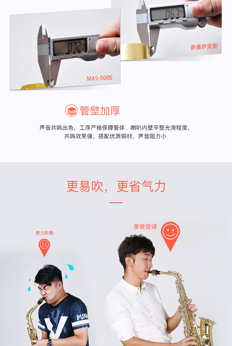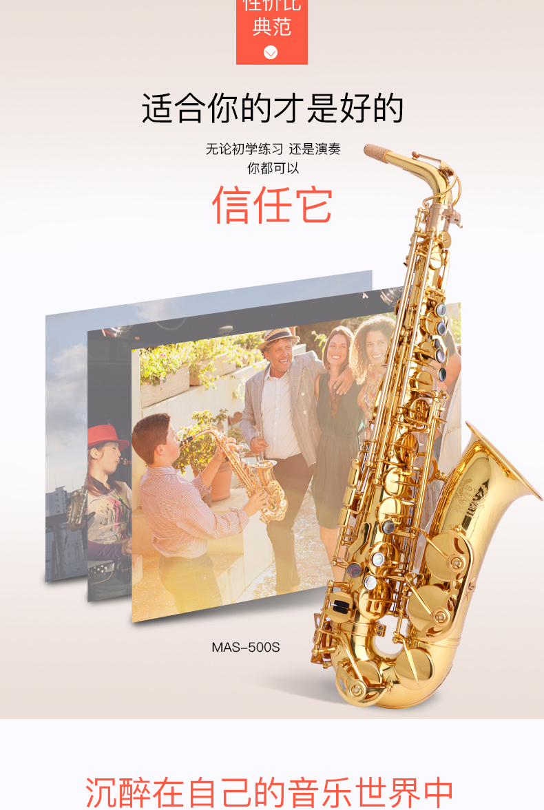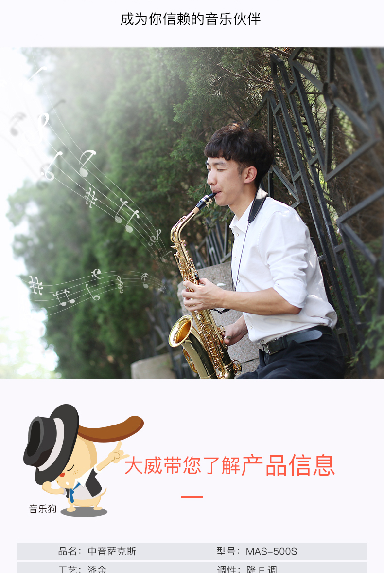 商品名称:美德威中音萨克斯乐器降E调萨克斯风/管初学演奏萨克斯MAS-500S