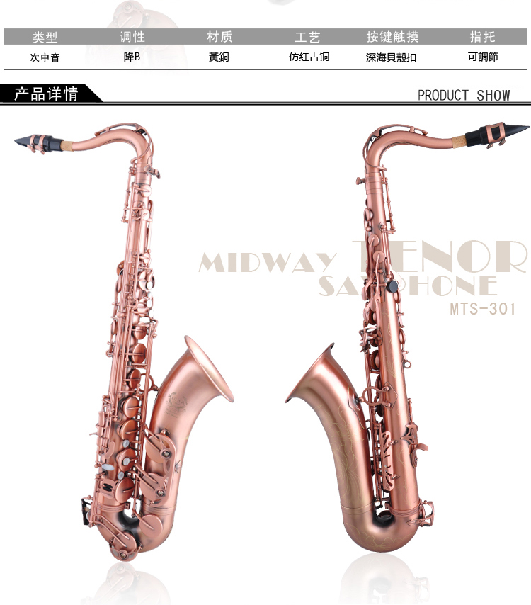 商品名称:MTS-301美德威次中音萨克斯管青红古铜次中音萨克斯风送哨片笛头