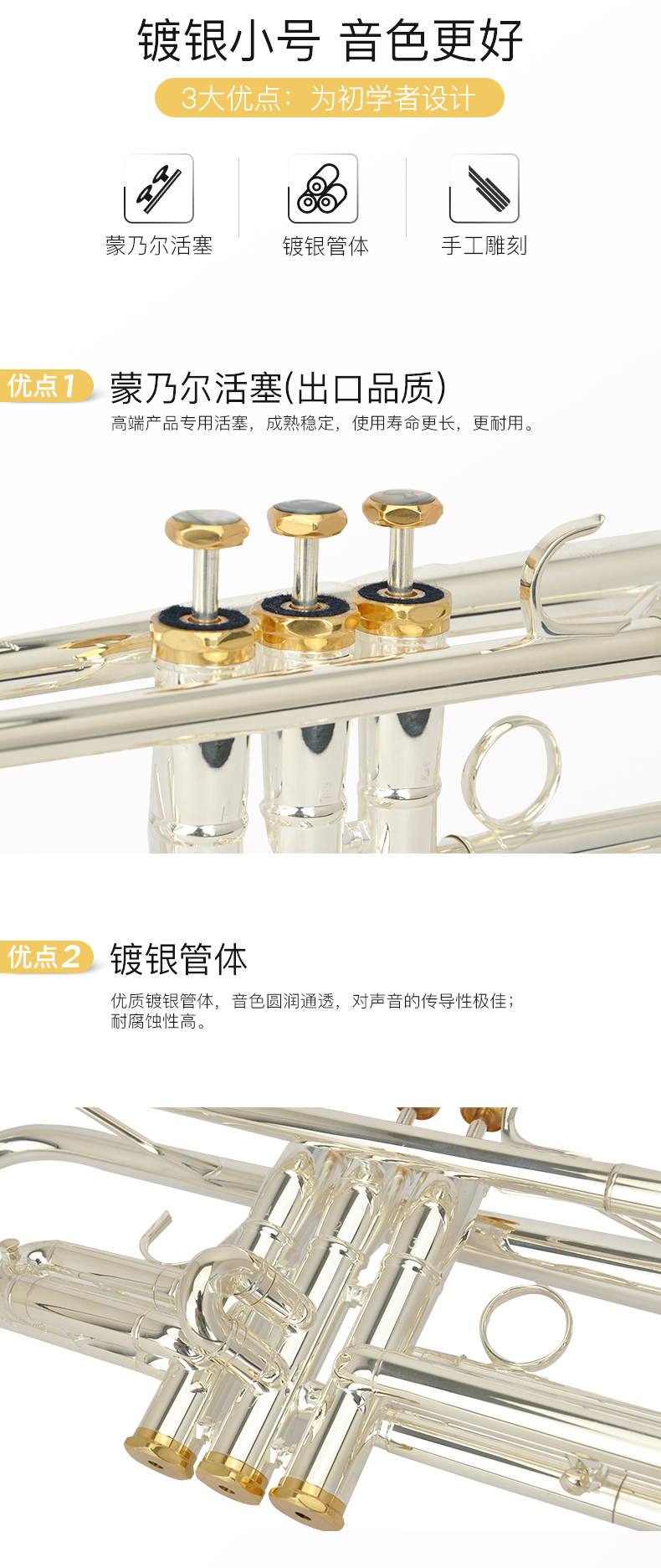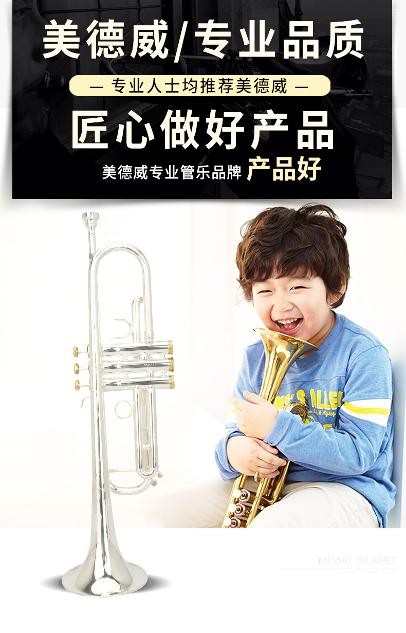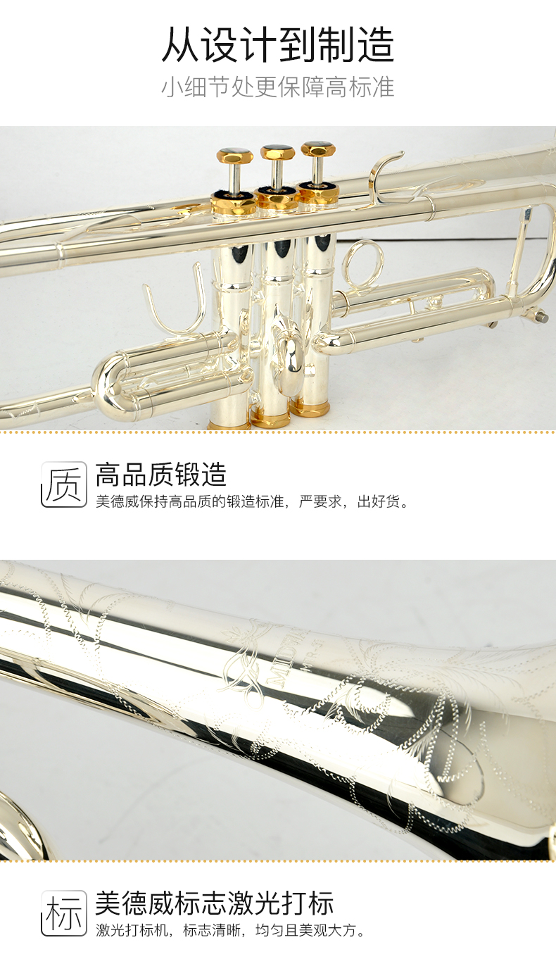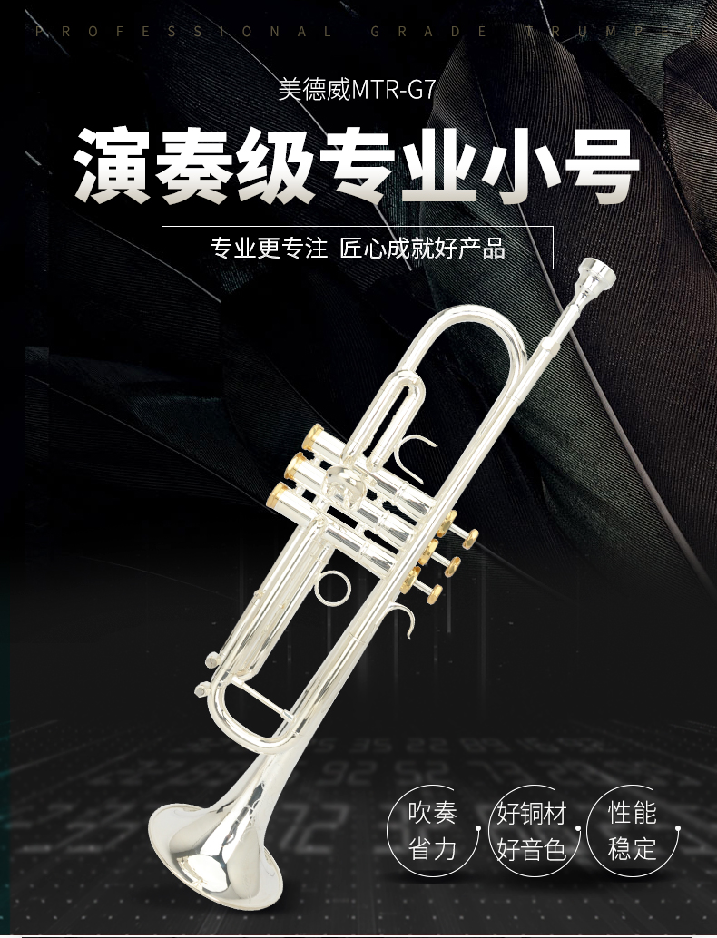 商品名称:小号乐器 演奏级专业镀银小号 降B调美德威乐器 MTR-G7