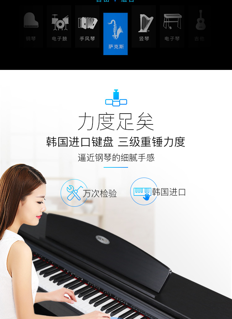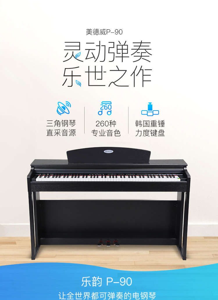 商品名称:美德威P90智能数码电钢琴88键重锤电子钢琴儿童青少年专业电钢琴