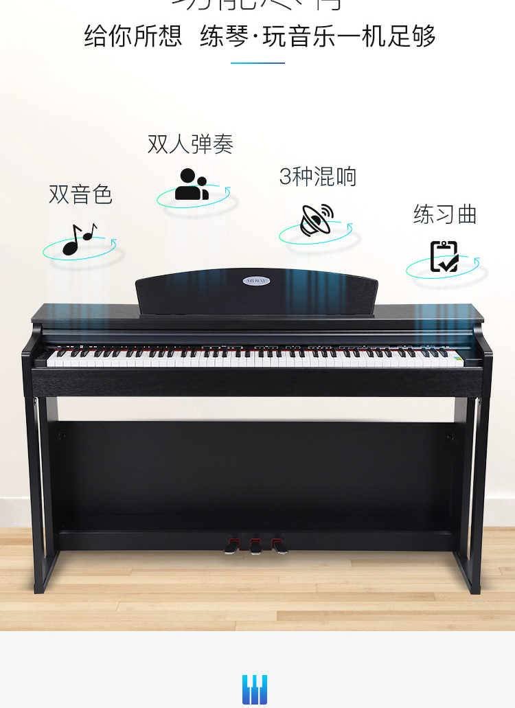 美德威P90智能数码电钢琴88键重锤电子钢琴儿童青少年专业电钢琴