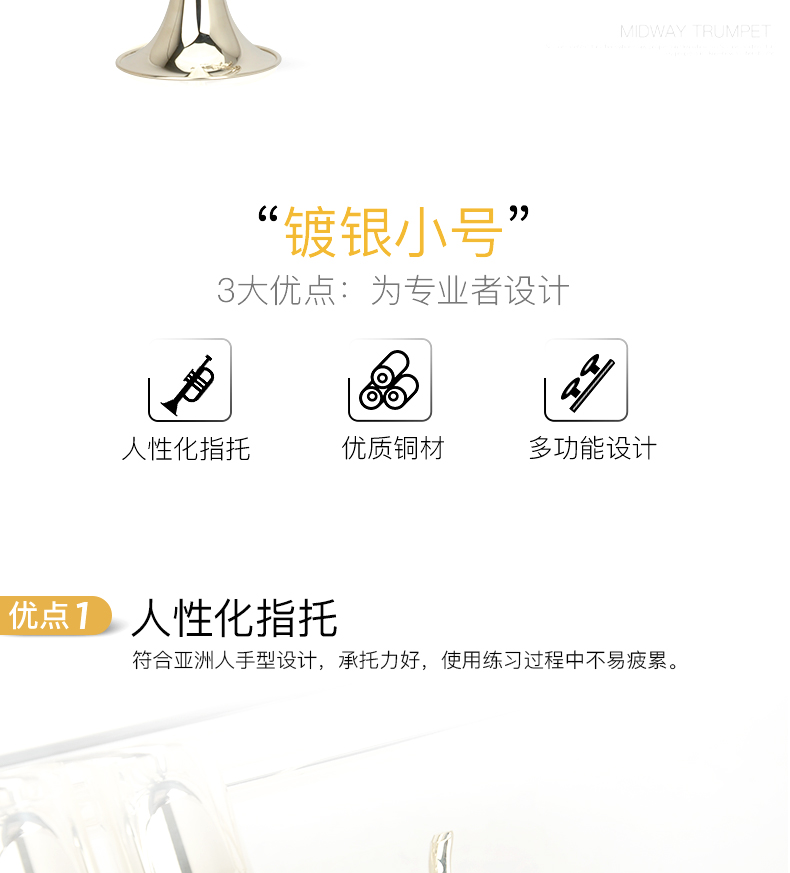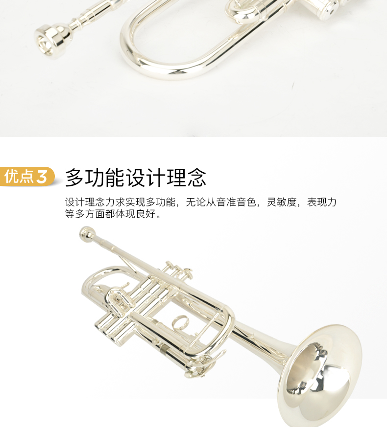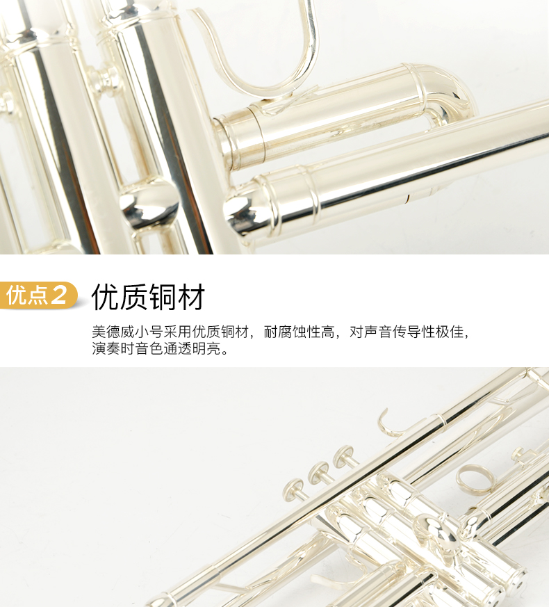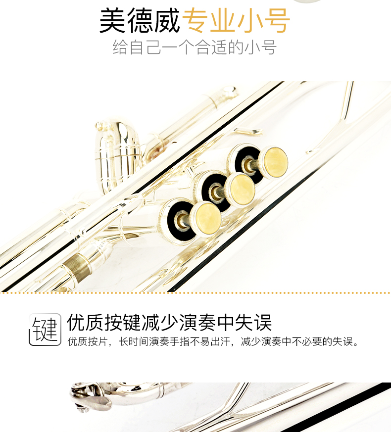 商品名称:小号乐器 演奏级 降B调小号镀银小号 美德威乐器MTR-H7