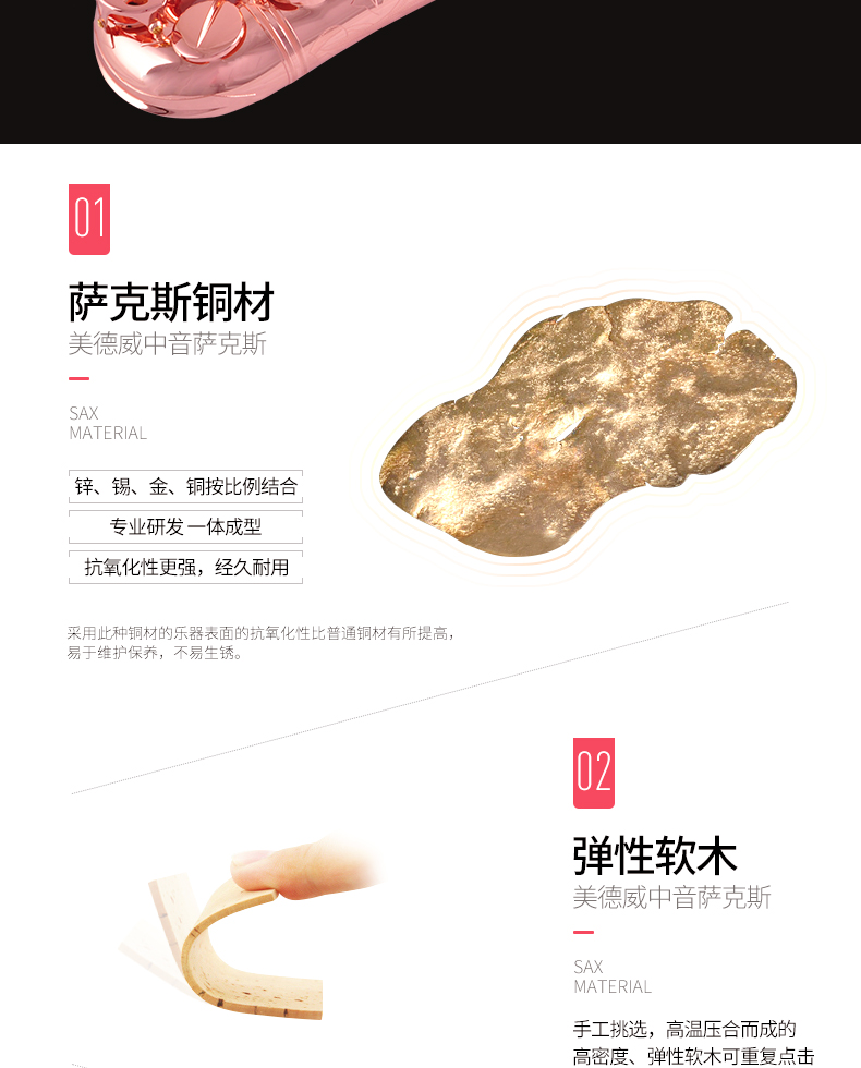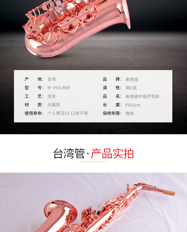 商品名称:萨克斯 M-PAS-86R大师系列台湾原产中音萨克斯玫瑰金 中音萨克斯