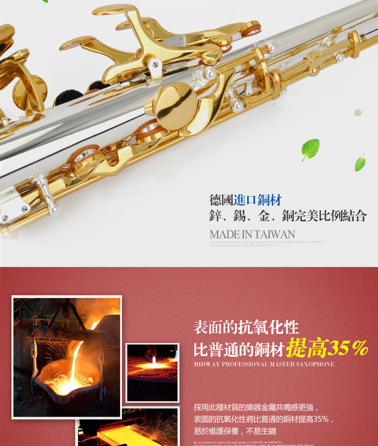 商品名称:美德威台湾萨克斯 M·PSS-86S大师系列 高音萨克斯 镀银金键