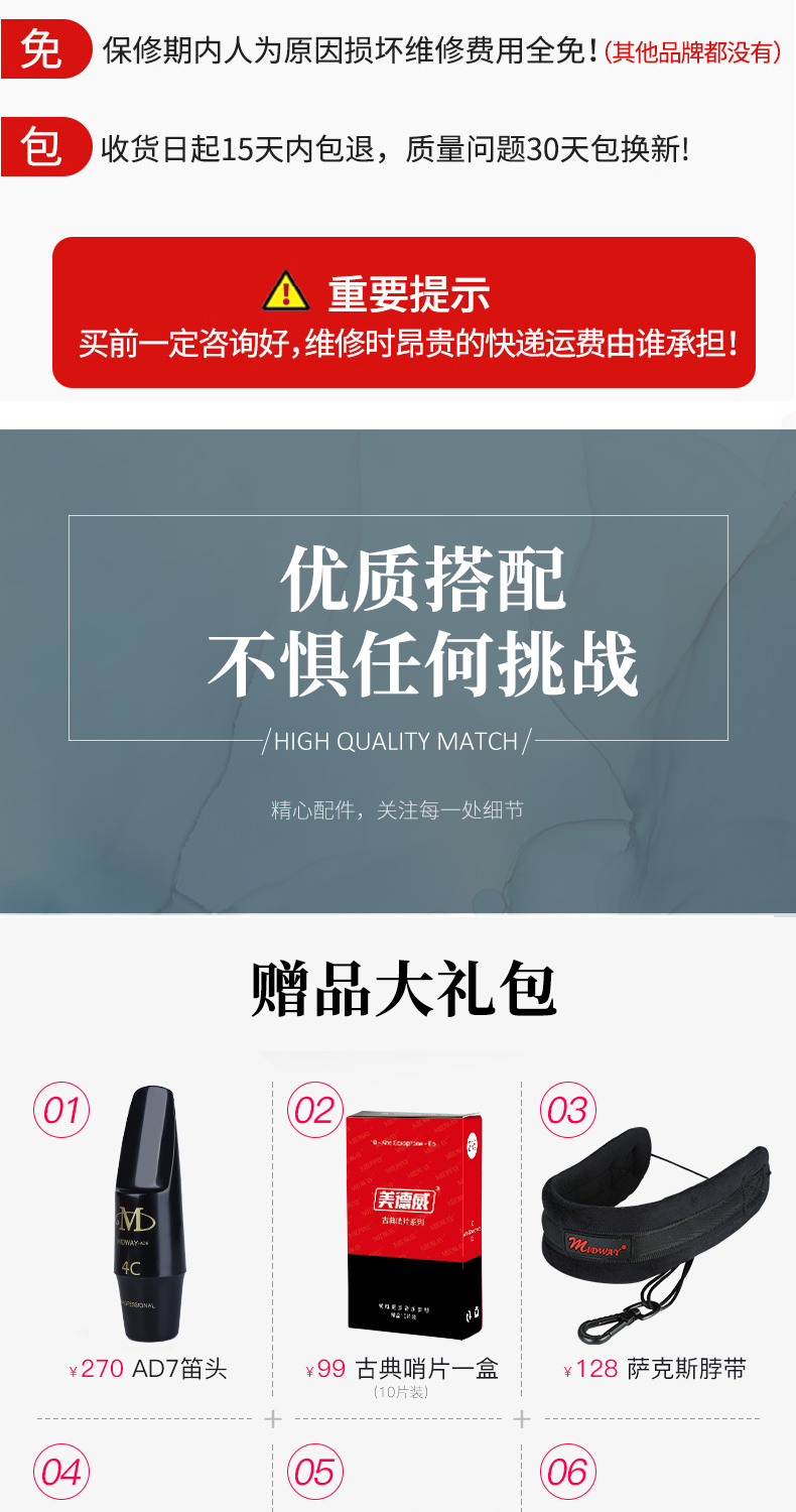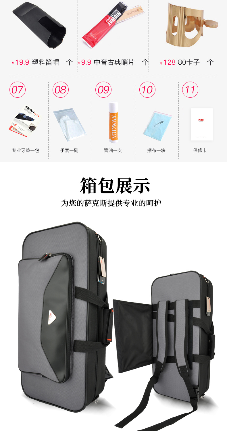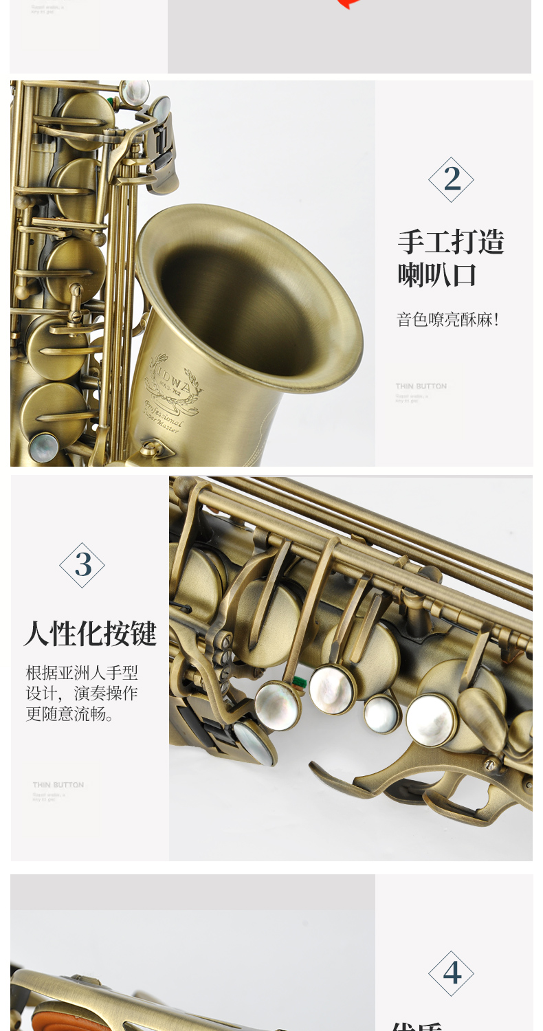 商品名称:萨克斯 MAS-702 美德威乐器 降E调中音萨克斯风/管 中音萨克斯