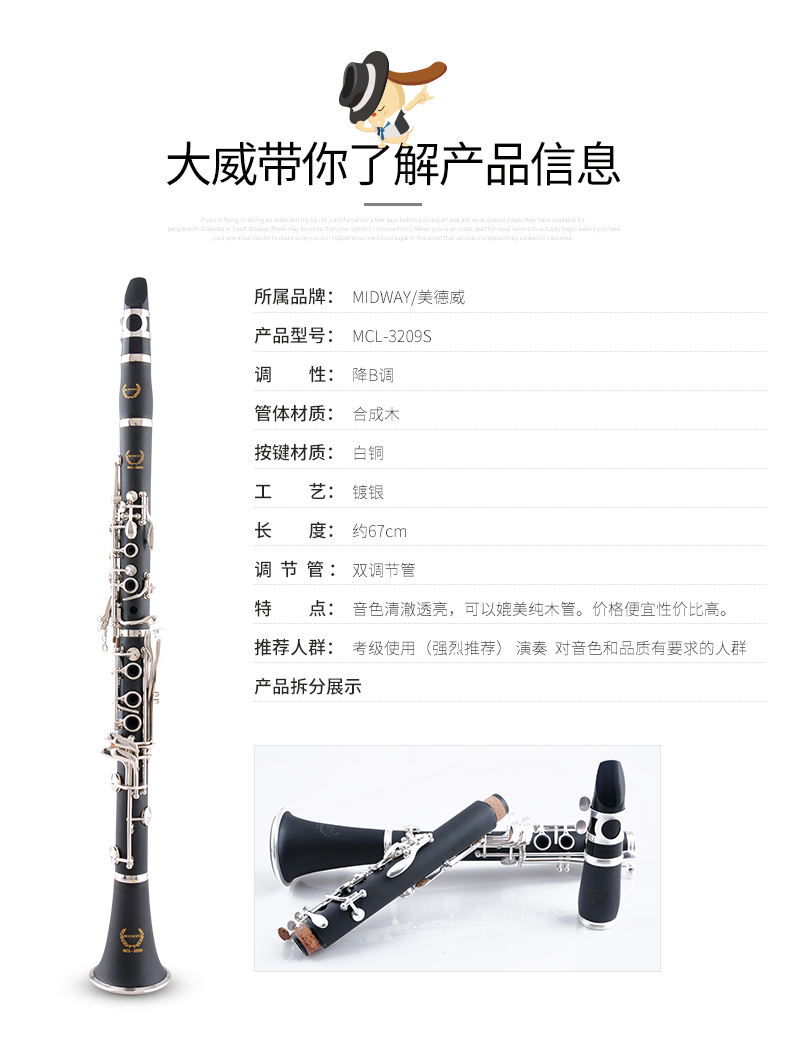 商品名称:美德威单簧管MCL-3209S降B调单簧管乐器单簧管乐器 黑管乐器