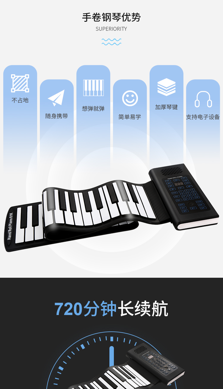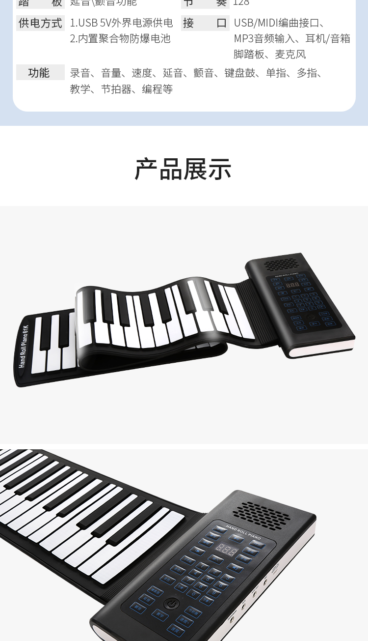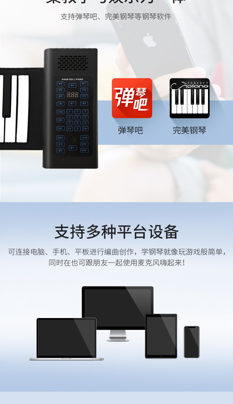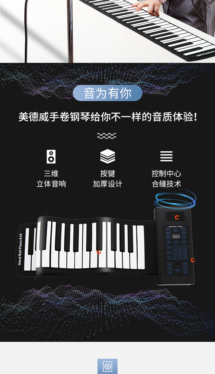 商品名称:美德威便携式手卷电子钢琴61键盘成人家用初学者入门随身电子琴
