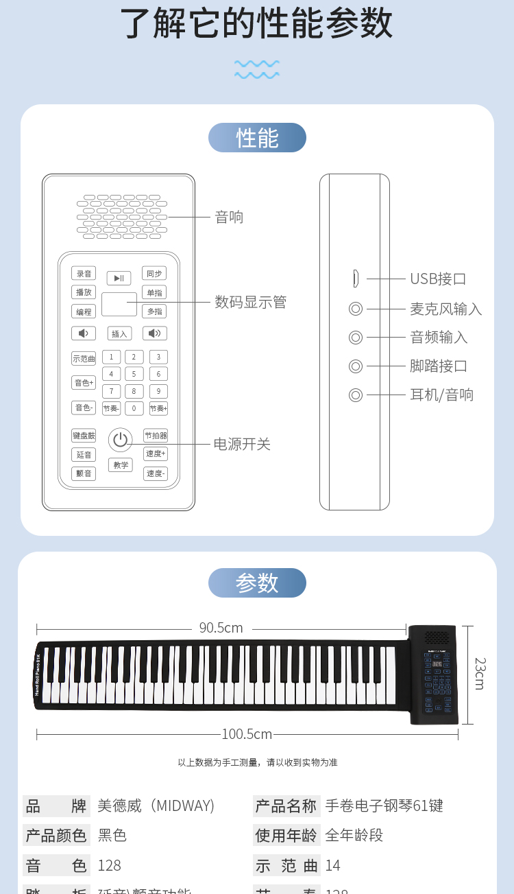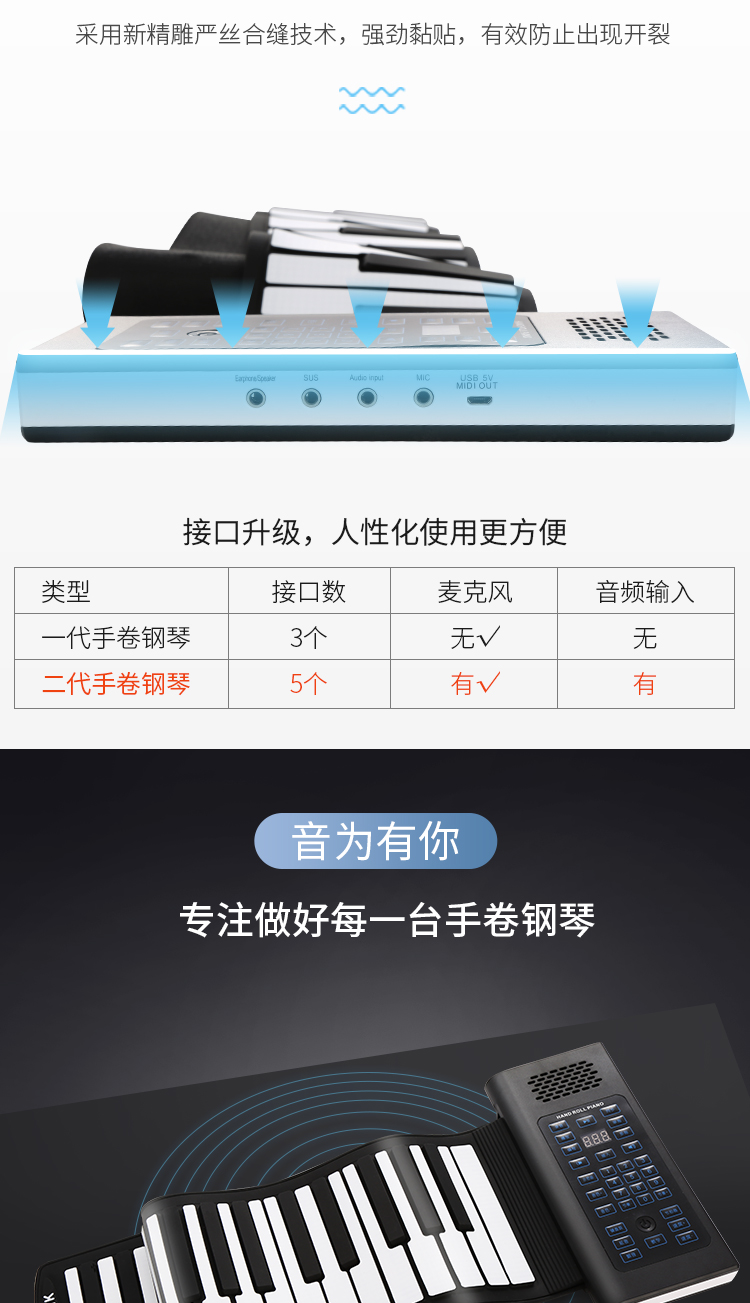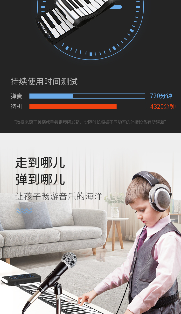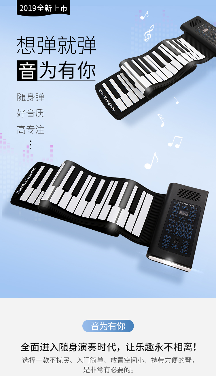 商品名称:美德威便携式手卷电子钢琴61键盘成人家用初学者入门随身电子琴