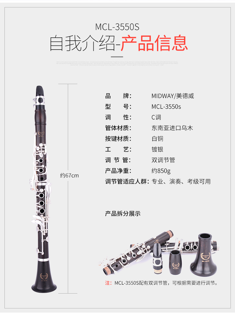商品名称:MCL-3550S美德威 C调单簧管乐器单簧管乐器 黑管 单簧管乐器