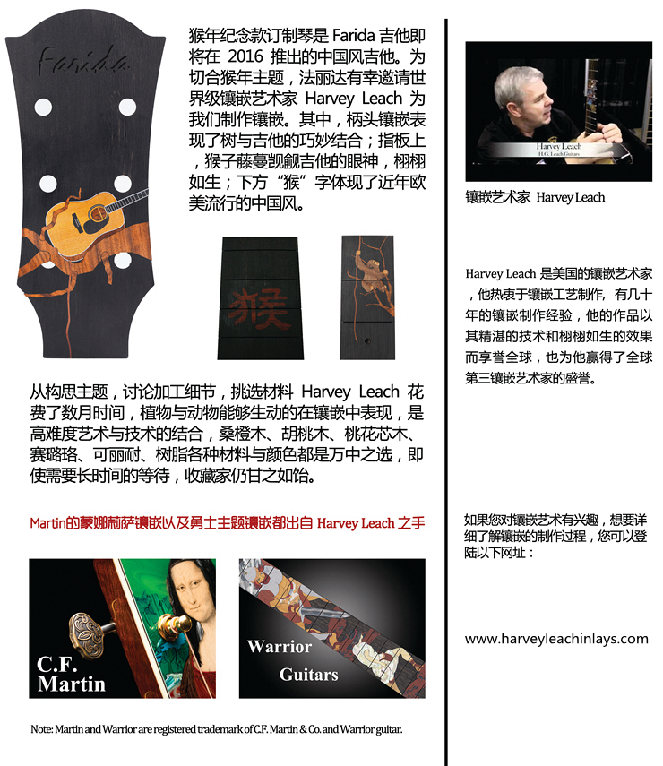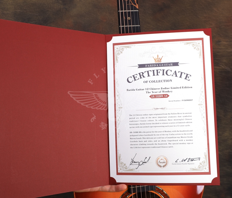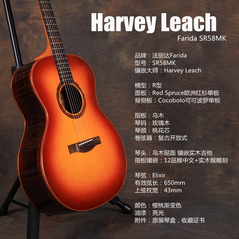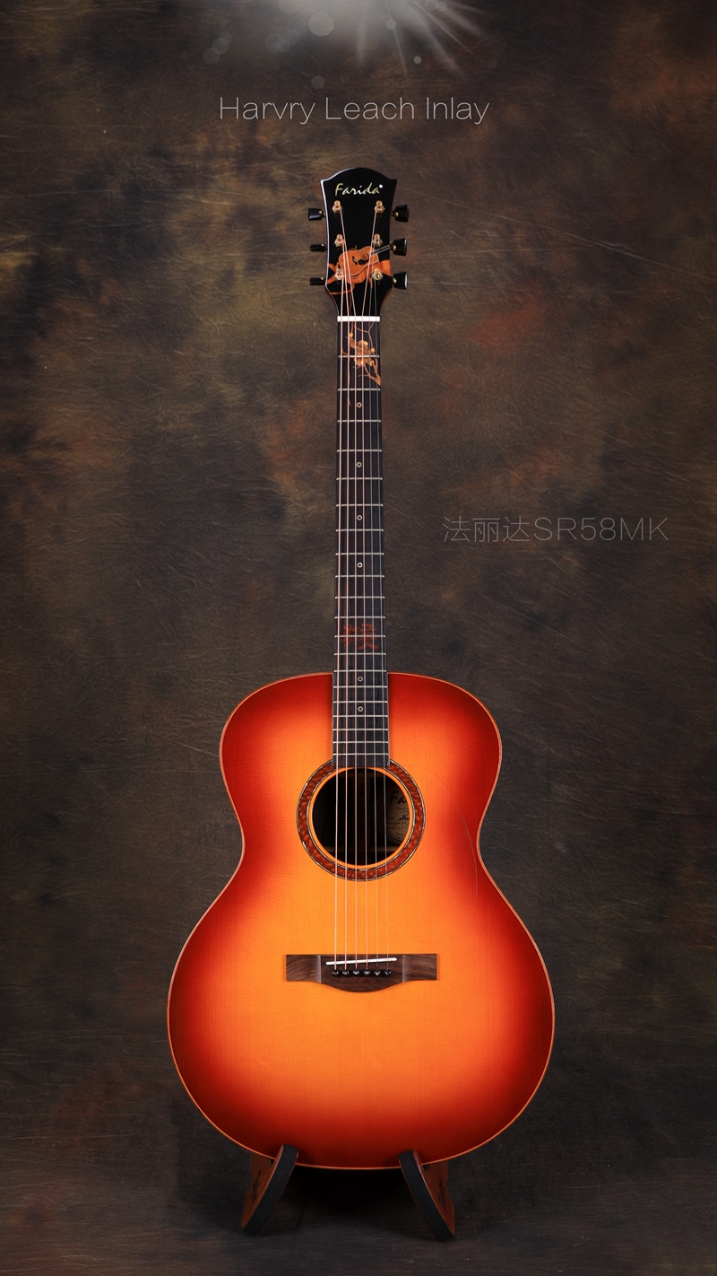 商品名称:法丽达farida SR58MK猴 Harvey Leach镶嵌 全单民谣吉他