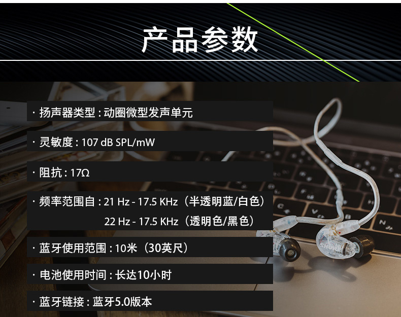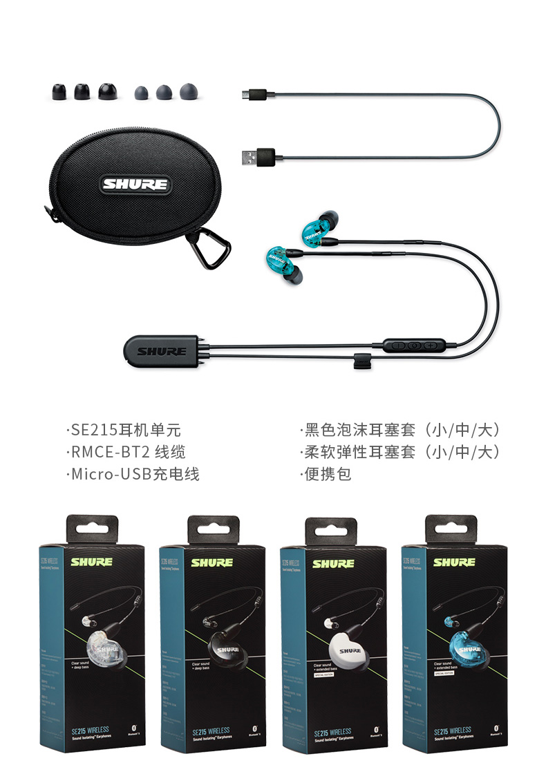 商品名称:【全新上市】Shure/舒尔 SE215-BT2 无线蓝牙耳机入耳式音乐耳塞